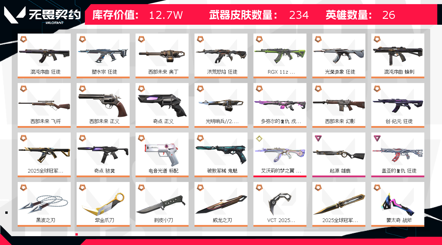 • 皮肤资产价值: 127040
