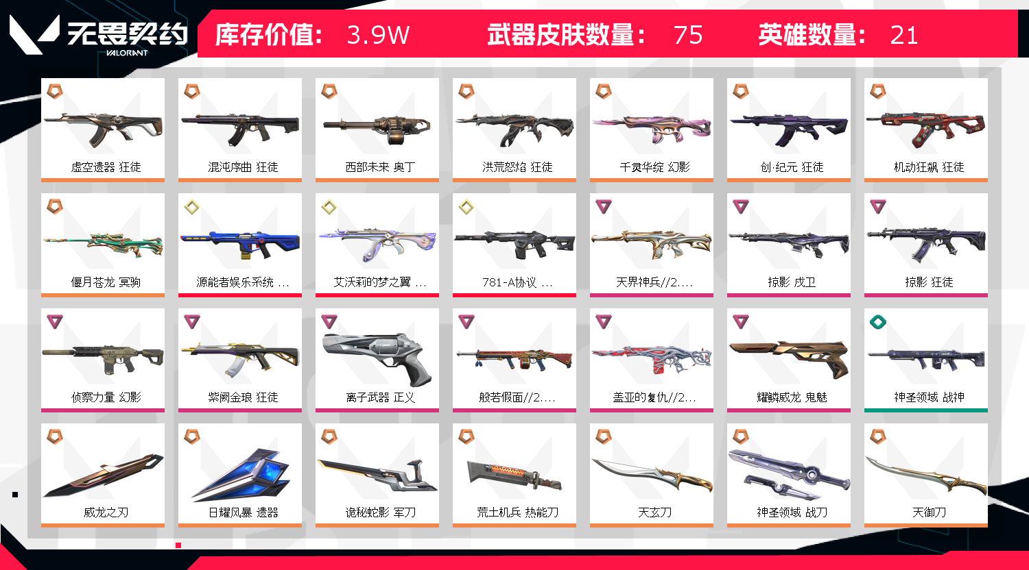 • 皮肤资产价值: 39040