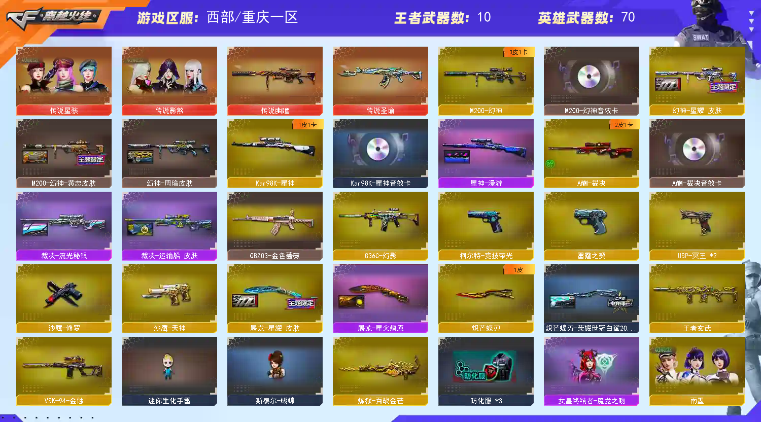• 游戏区服:穿越火线 / 西部 / 重庆一区