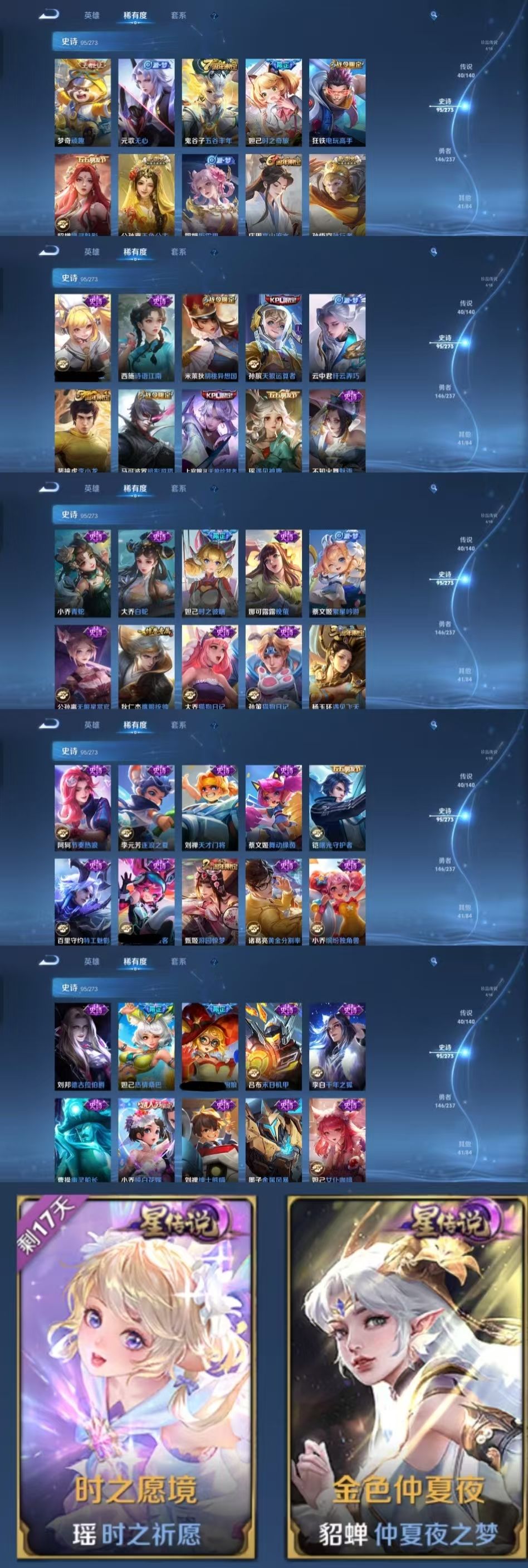 v10、537皮6水4无双、安琪拉-颠倒童话·魔镜、朵莉亚-神骥、遇见神鼓、齐天大圣、白虎志、韩信荣耀典藏、73传说、时之魔女、瑶无双、青丘、九尾、神器明辉仪