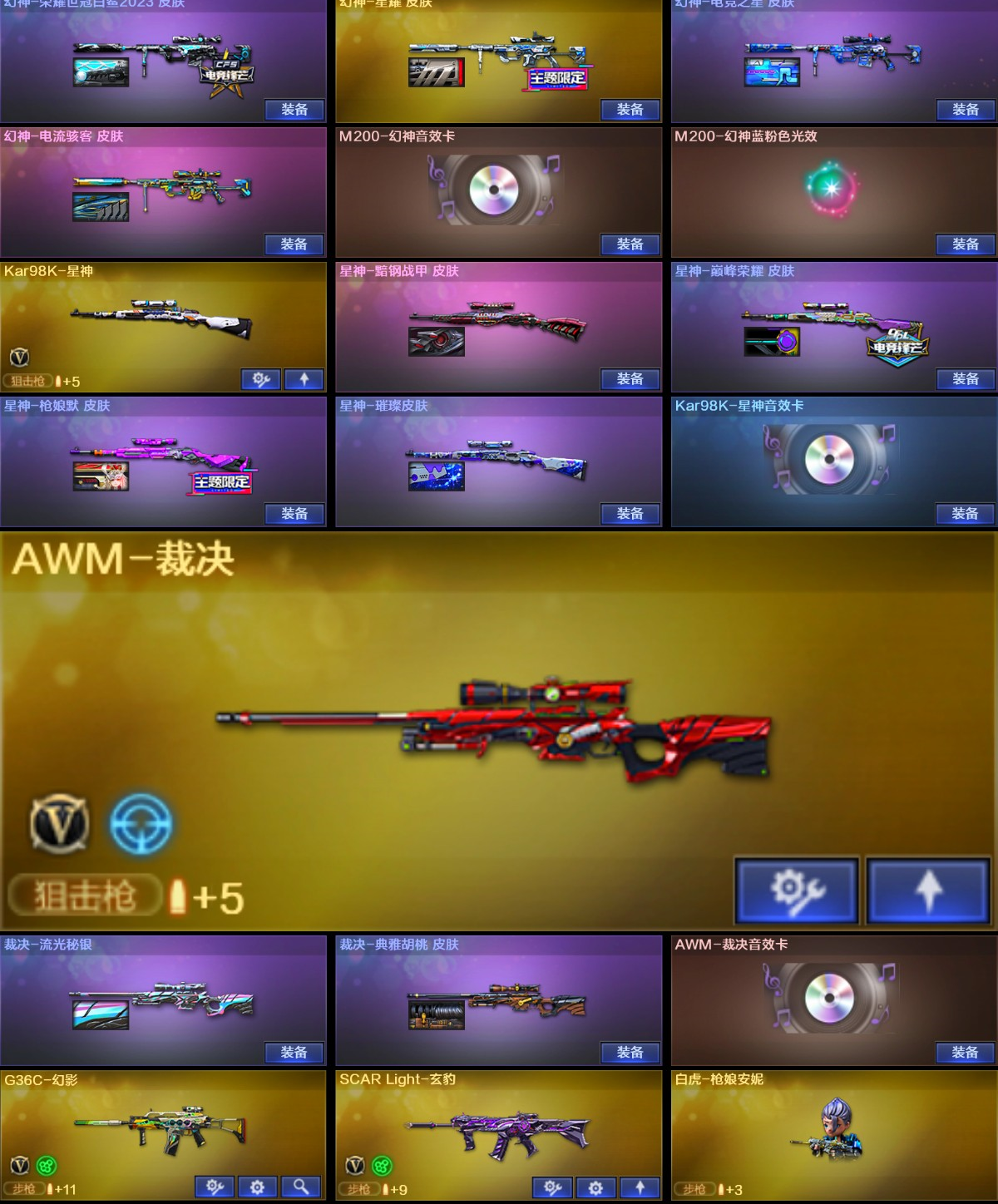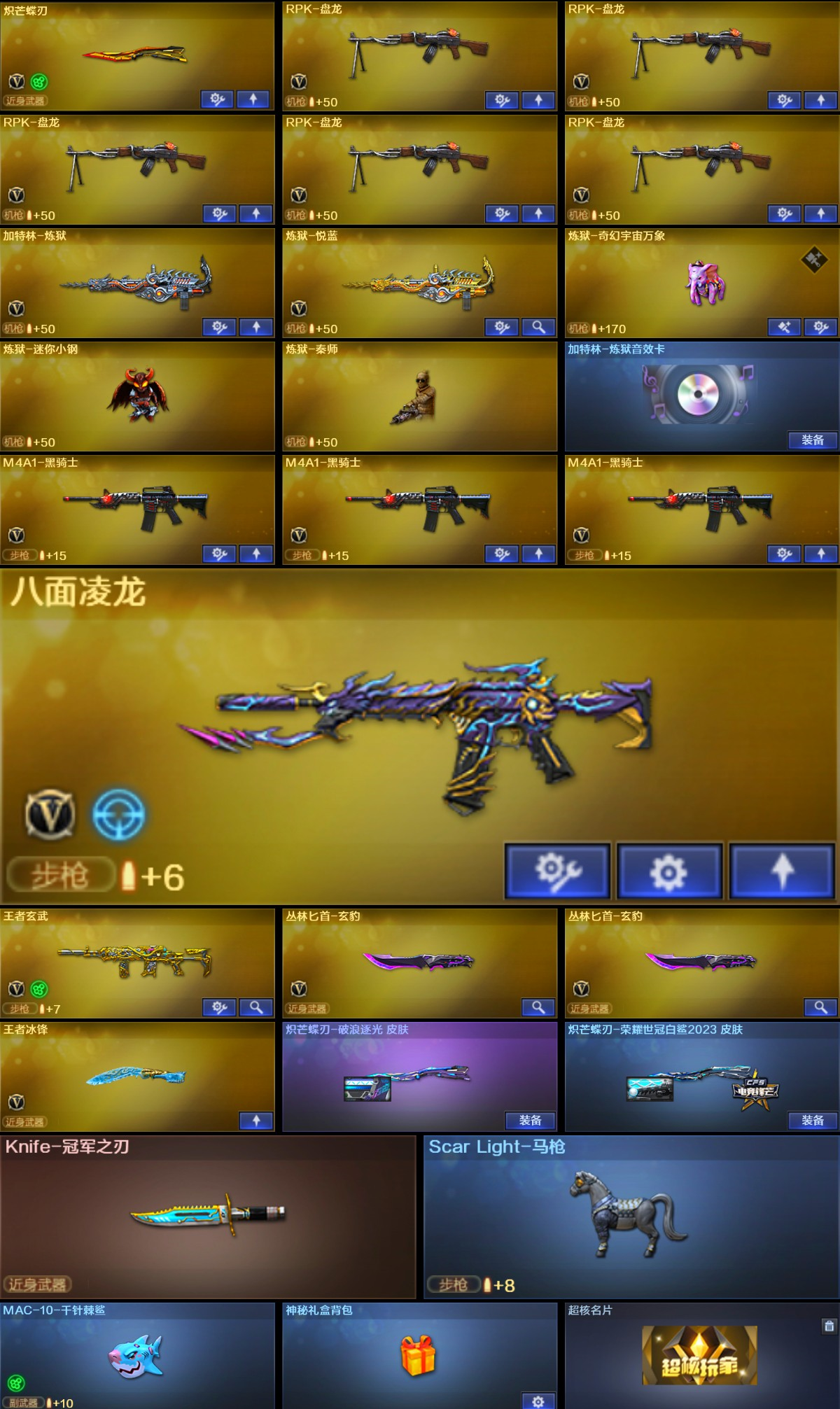 粉色泡泡象,满配八面玲珑,幻神 星神 裁决三件套四防隼 毒蝰术士 云悠悠|冠军之刃|玄豹套|幻影;柯尔特-荣耀世冠白鲨2023,传说幽冥,炽芒蝶刃,Knife-冠军之刃,隼,电竞教官-云悠悠,RPK-盘龙,