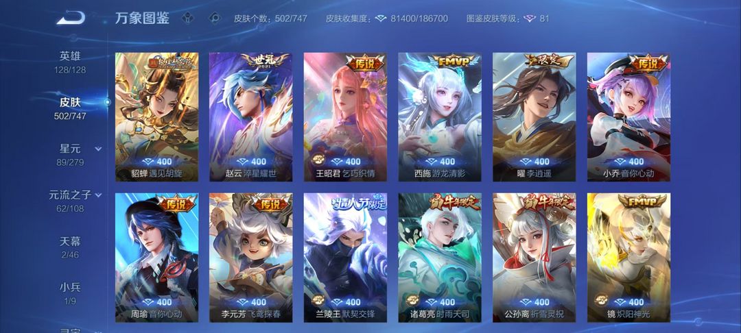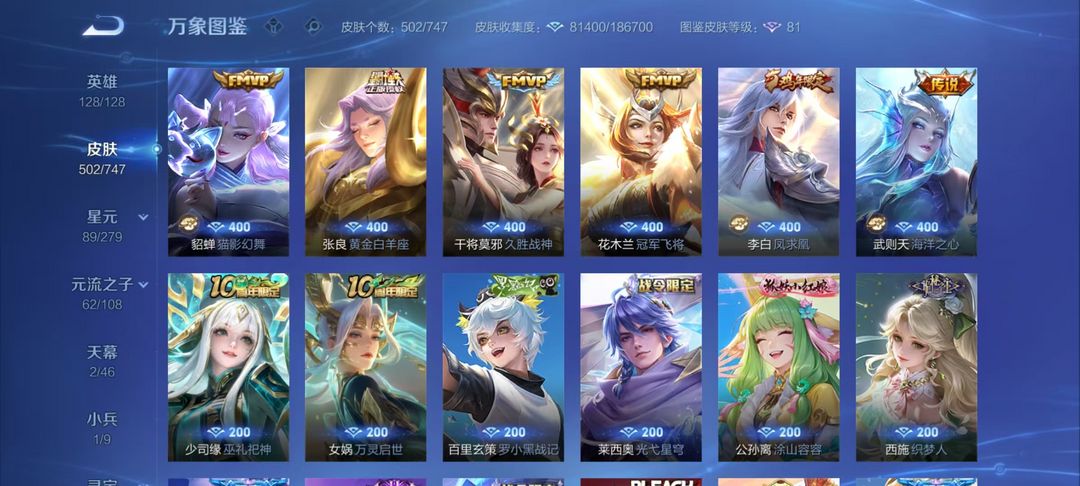【非沄直接上号】极品V10★三历史国标★430皮★六典藏★诸葛亮新典藏★虎年五限定★鸣剑戈影★活力突击️★多限定