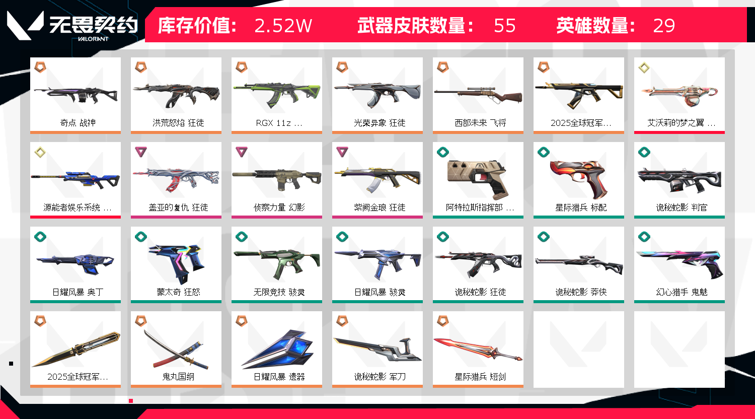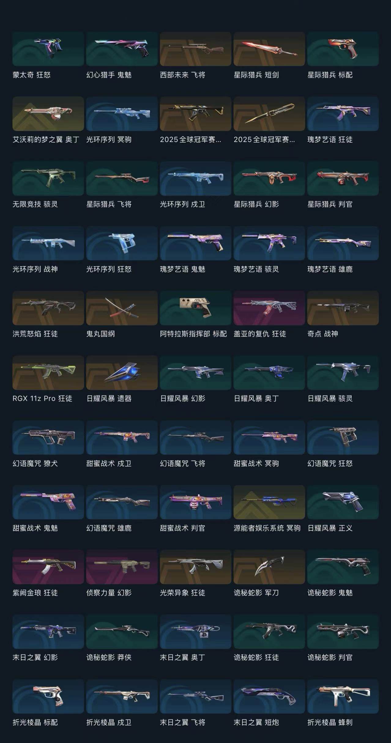 25套✔️流脓,显卡,光荣,紫金,盖亚AK✔️侦查幻影✔️国刚鬼丸,奇点战神,猫猫奥丁,飞将,大狙✔