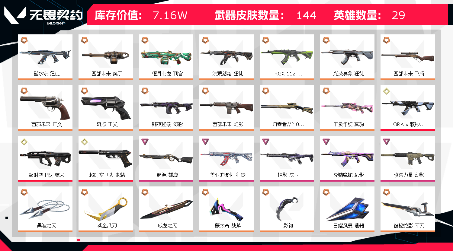 • 武器皮肤数量: 144