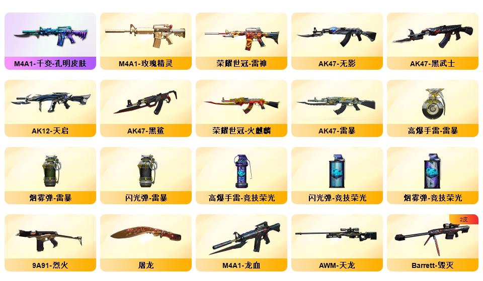 竞技荣光套装/荣耀世冠套装/雷暴套装,_M200-幻神/M200-竞技荣光/Barrett-毁灭(2)/斯泰尔-蝴蝶/Barrett-极光/Kar98K-星神/