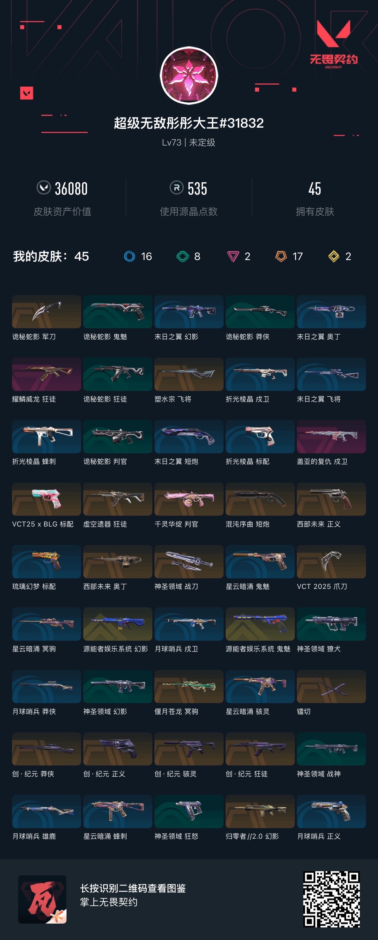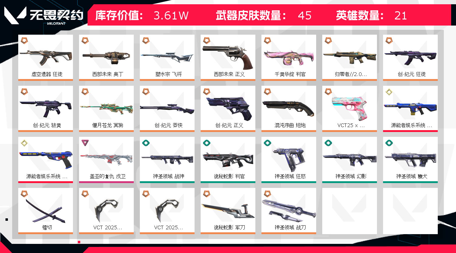 首页 > 租号大厅 > 无畏契约-wegame > wegame/wegame > 3.6w库存精品号,每个枪械都有毕业热门皮,长年低段位号,练技术,带妹首选