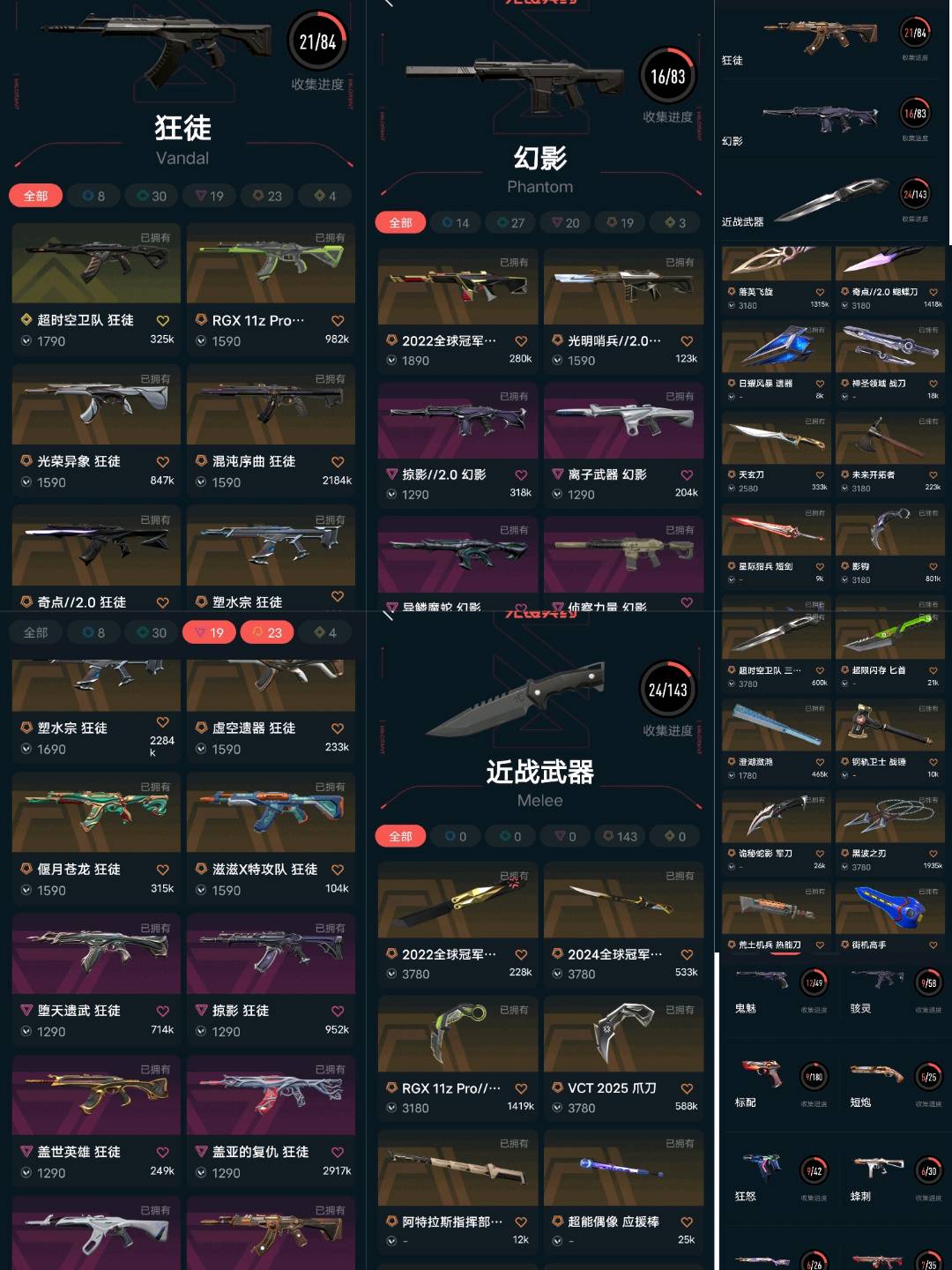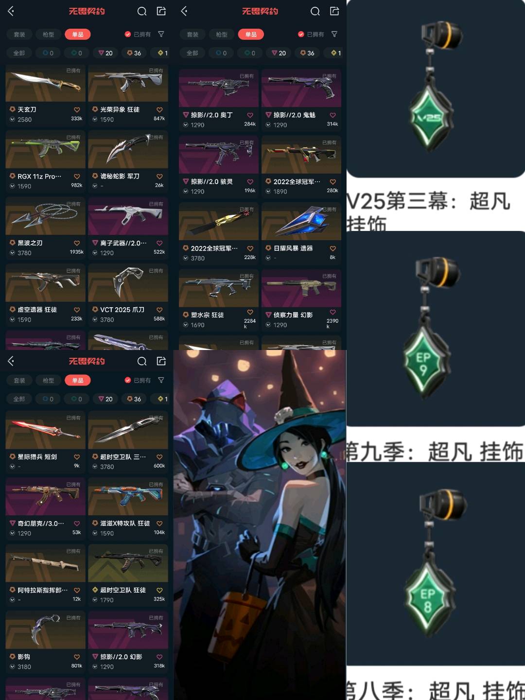 开挂必起诉;黑波之刃,VCT 2025 爪刀,盖亚的复仇 狂徒,虚空遗器 狂徒,掠影 戍卫,掠影 狂徒,异鳞魔蛇 幻影,