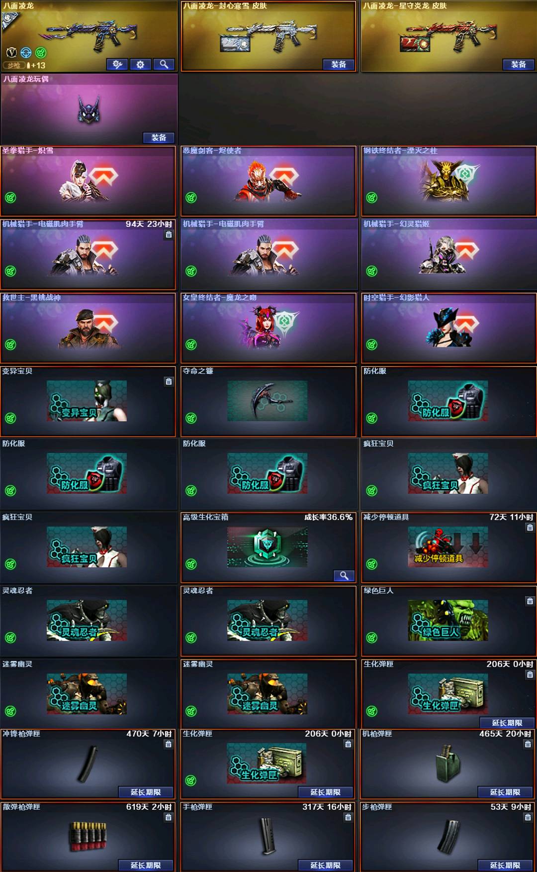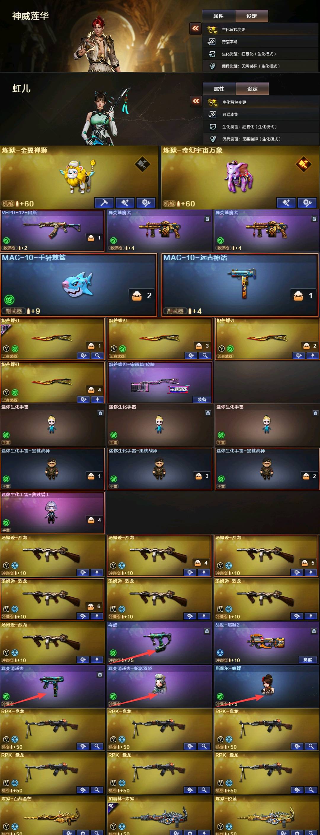 神威莲华虹儿❤️八面双奇幻泡泡象金翼禅狮清道夫宙斯双镇魔④把炽芒蝶刃⑥烈蝴蝶MAC鲨鱼②把幻神权带卡