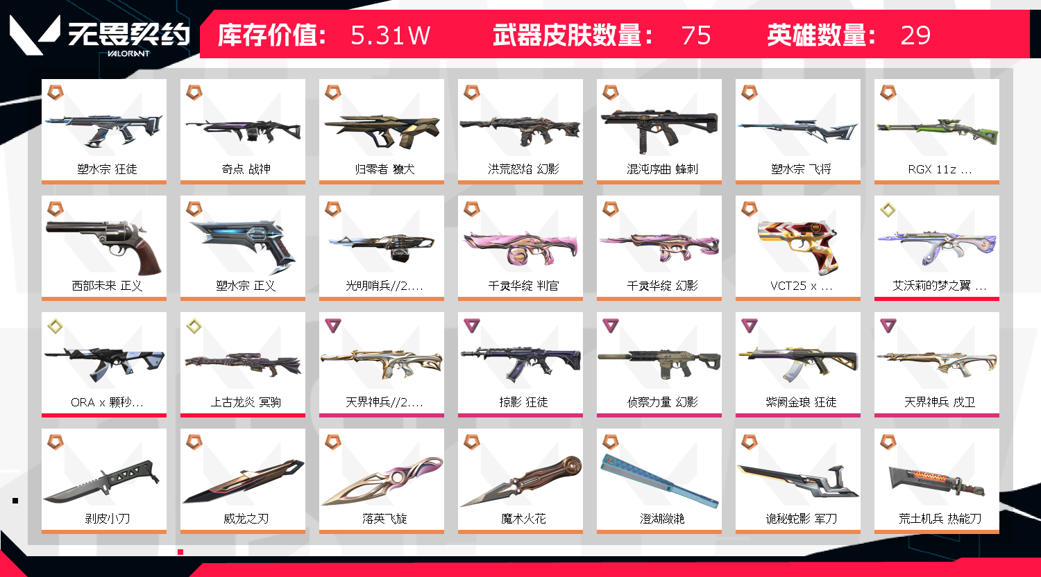 • 皮肤资产价值: 53140