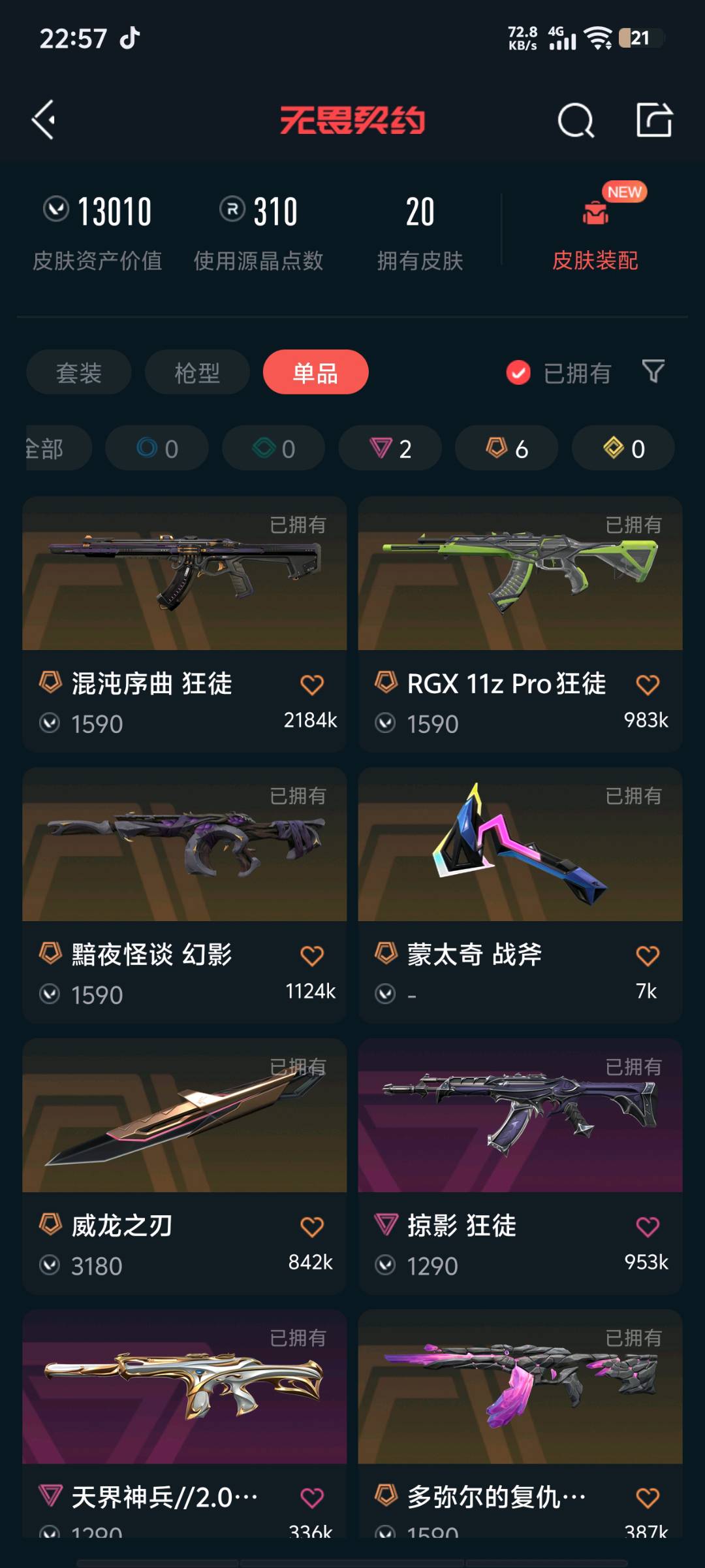 • 皮肤资产价值: 13010