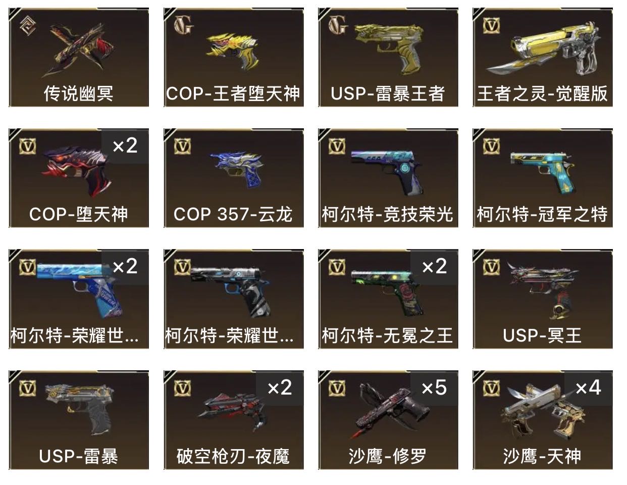 喜欢收藏;USP-雷暴,柯尔特-无冕之王,USP-雷暴王者,柯尔特-荣耀世冠白鲨2023,传说幽冥,柯尔特-冠军之特,炽芒蝶刃,
