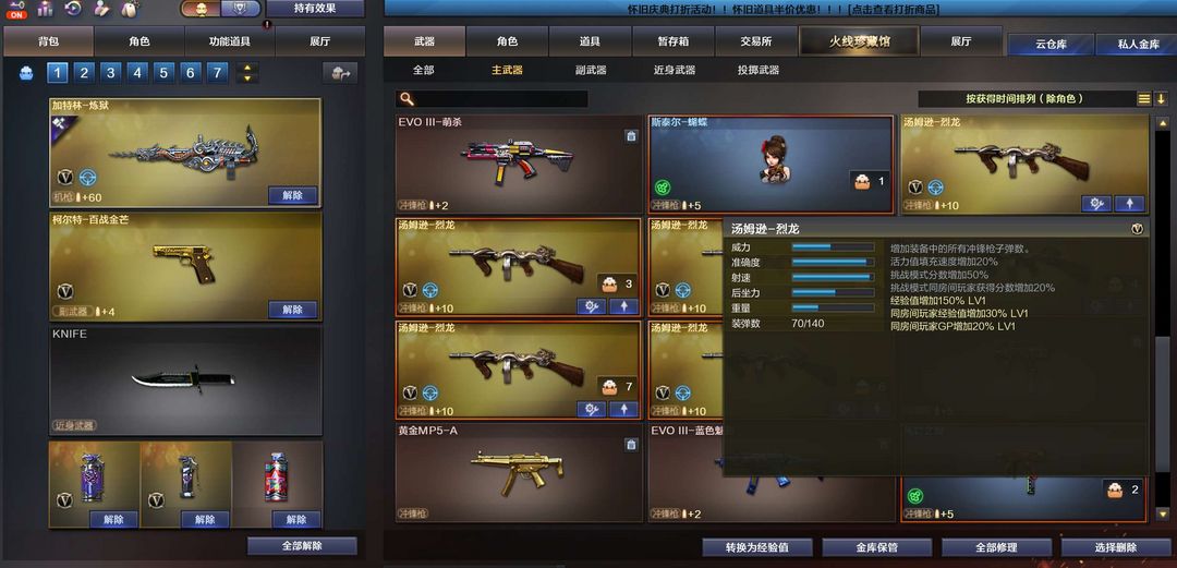 生化|神威莲华|炼狱-金翼禅狮|斯泰尔蝴蝶|蝴蝶刀2把|五盘六烈|全弹匣|传说圣谕|辉光|星骸|幻神