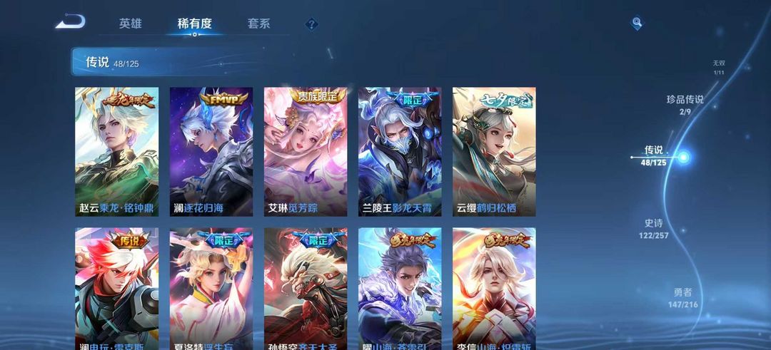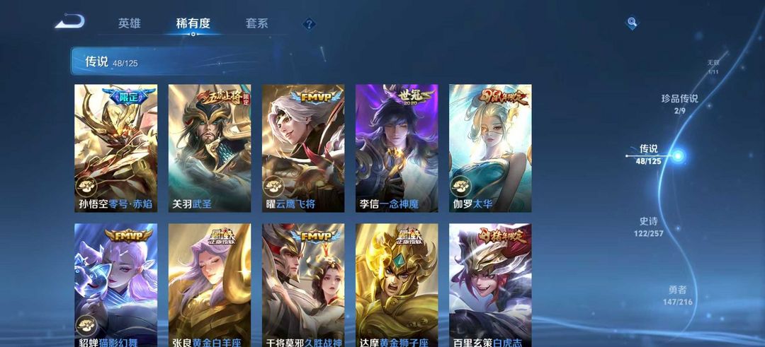 【非云直上】V10★皮肤榜一★539皮满典藏★鲁班时之奇旅会员★虞姬黛羽霜翎星元★吕布白金战神★全能大师★多金标★个性按键