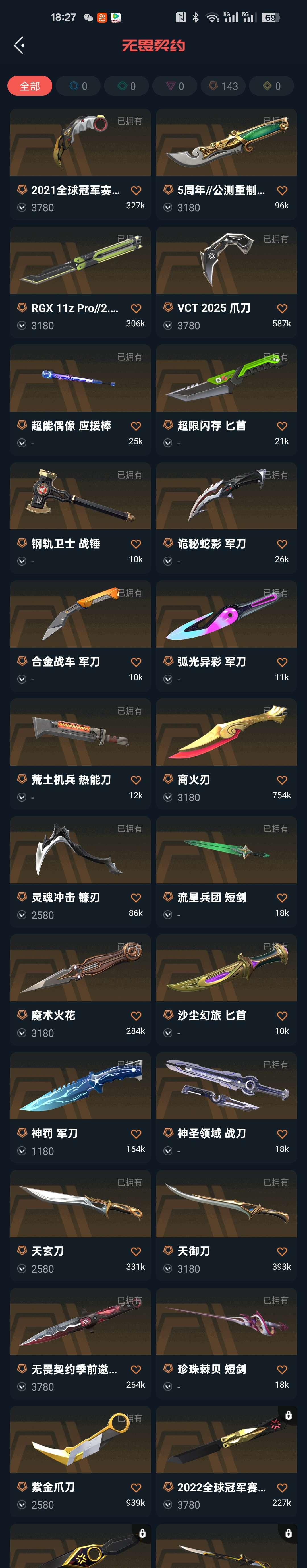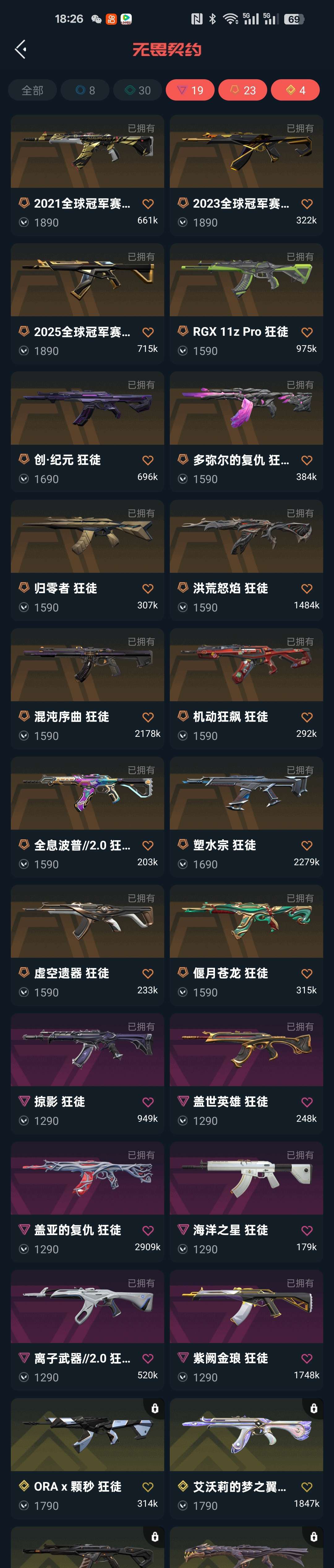 首页 > 租号大厅 > 无畏契约-wegame > wegame/wegame > 武器皮肤可在下列图片中查看,觉得想租此号的板板可以尽情下单哦!❤️离火刃❤️各种冠军限定枪皮