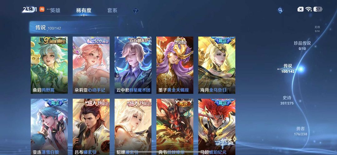 【天花板V10】535满皮满典藏/大乔时之奇旅新皮/虞姬星元/白金战甲/个性按键★多星元部件