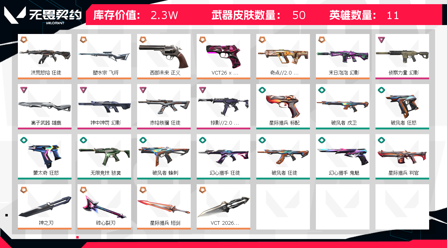 • 皮肤资产价值: 23050