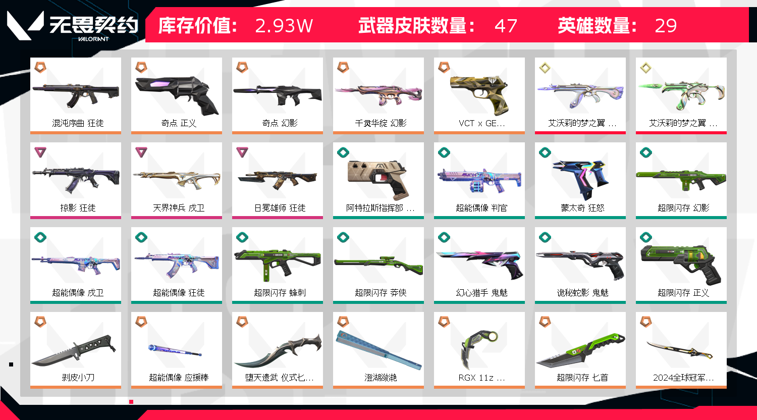 • 皮肤资产价值: 29300