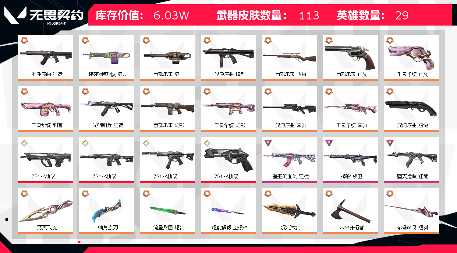 • 武器皮肤数量: 113