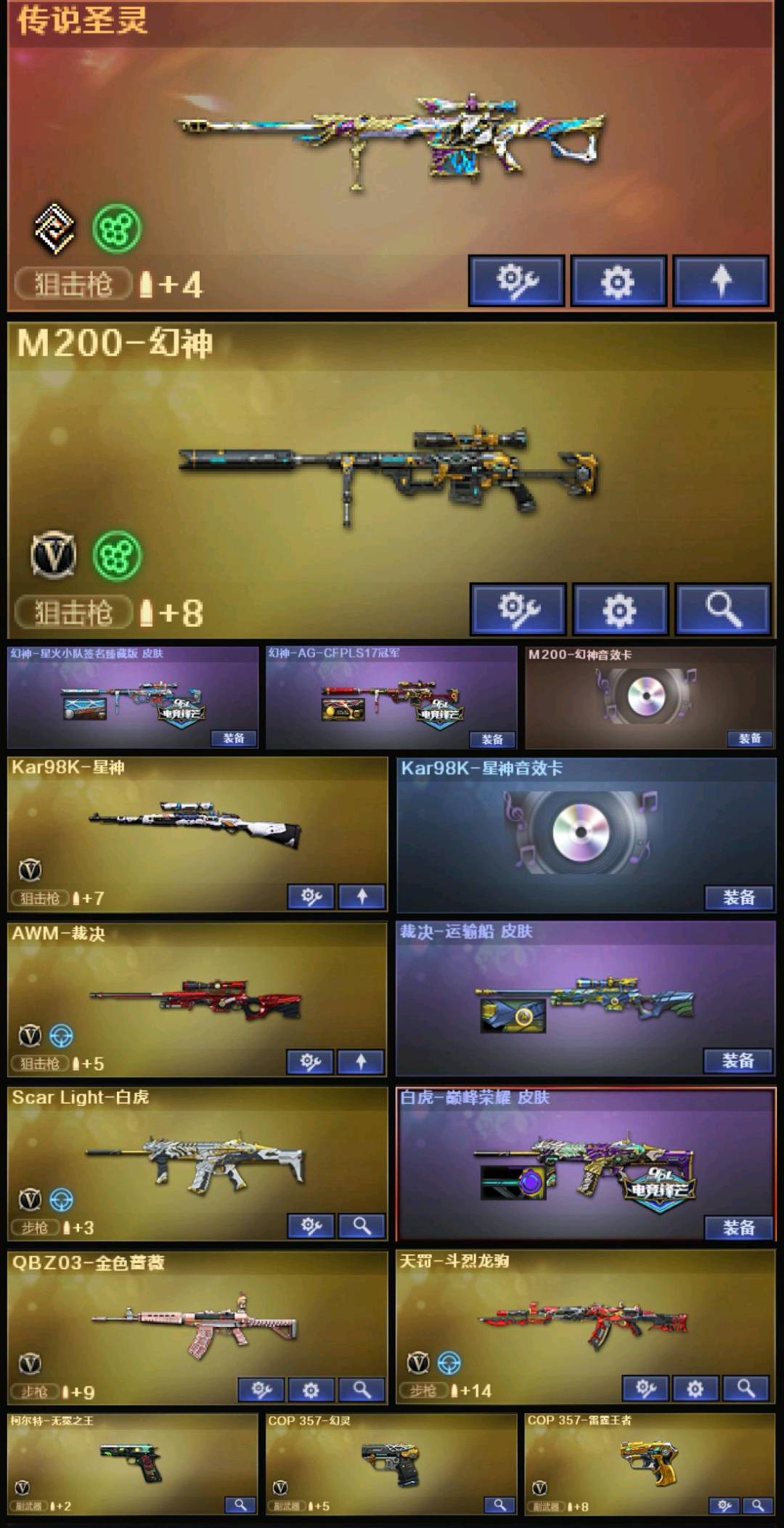 AG17星火+卡⭐星神+音效卡⭐无冕之王+2COP⭐白虎巅峰荣耀⭐QBZ+裁决+满雷⭐四防貂蝉+炫