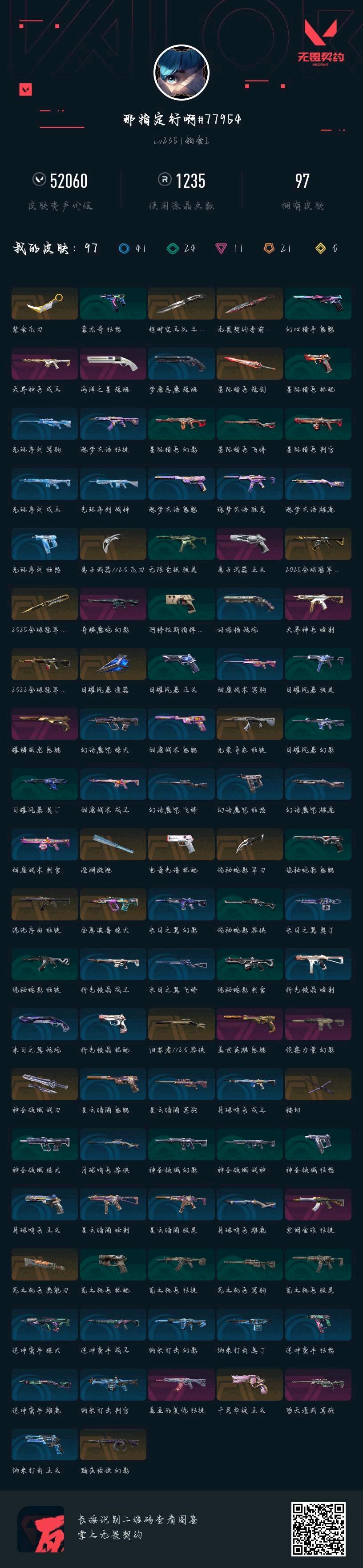 • 皮肤资产价值: 52060