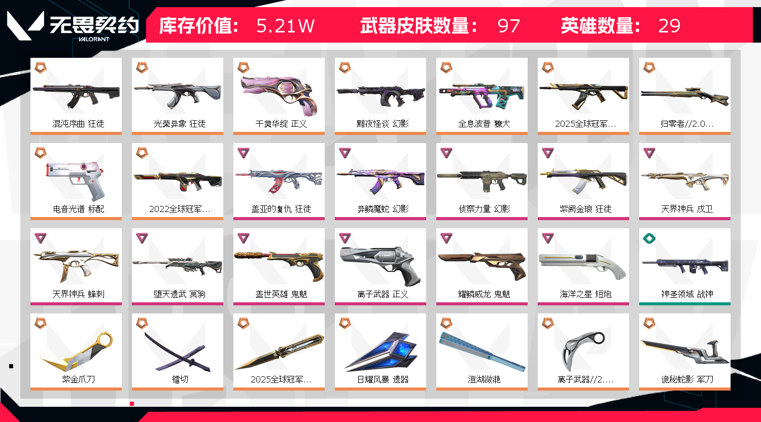 • 武器皮肤数量: 97