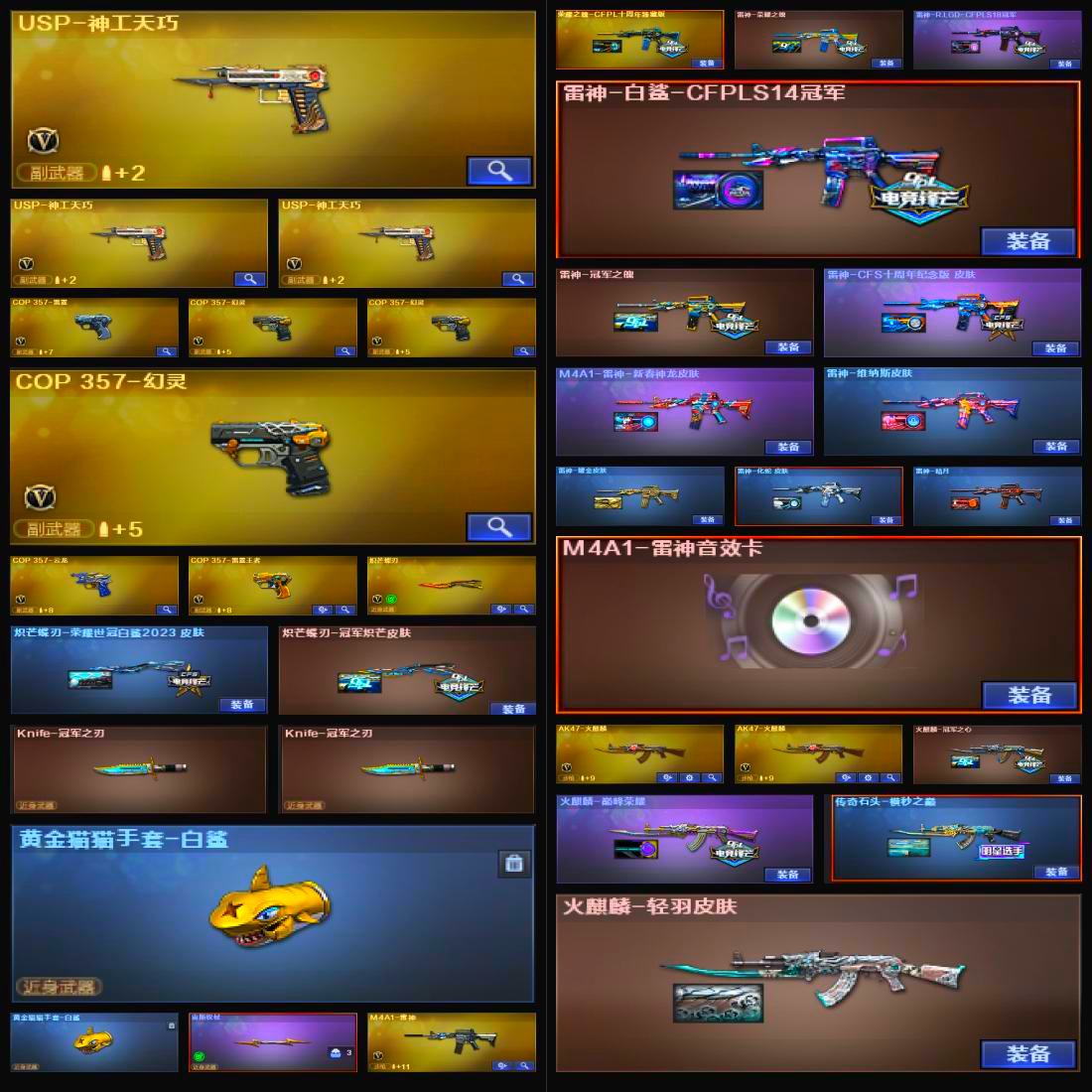 平台皮满女帝4花聚鼎幻神19皮音星神套裁决套G36C天袭天戎30把副手6盘6烈泡泡象冠刃3蝶刃;USP-雷暴,柯尔特-无冕之王,USP-雷暴王者,柯尔特-荣耀世冠白鲨2023,柯尔特-冠军之特,炽芒蝶刃,Knife-冠军之刃,