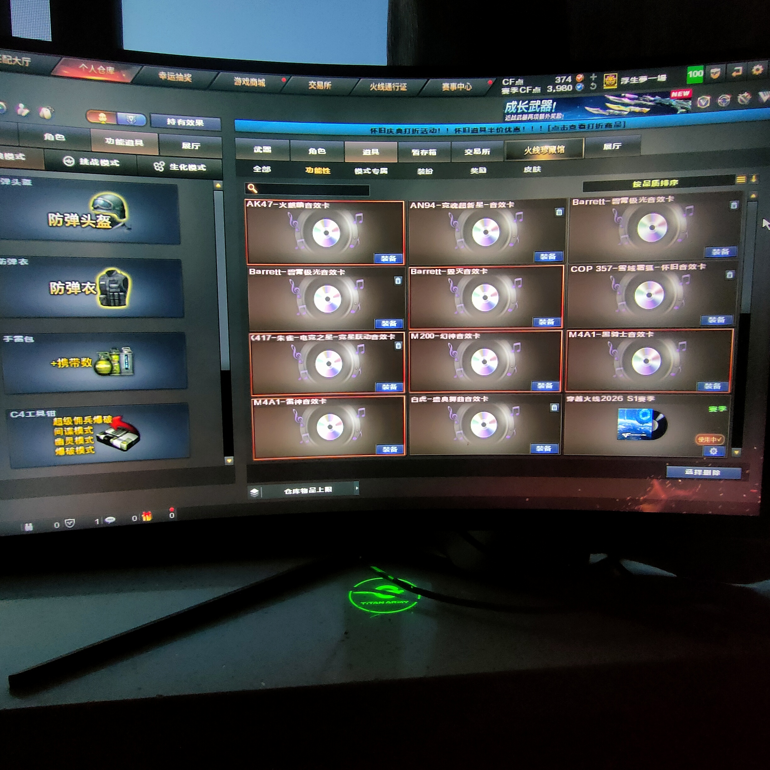 爆破生化号:基础爆破幻神皮音效卡、毁灭皮音效卡、步枪皮音效卡等 生化小人枪、6烈龙等;炽芒蝶刃,隼,RPK-盘龙,QBZ03-金色蔷薇,M200-幻神,