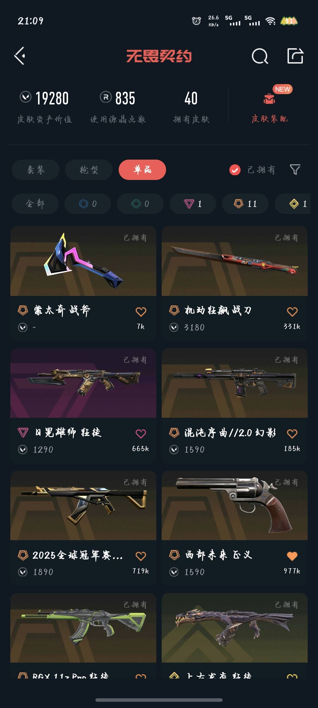 • 皮肤资产价值: 19280