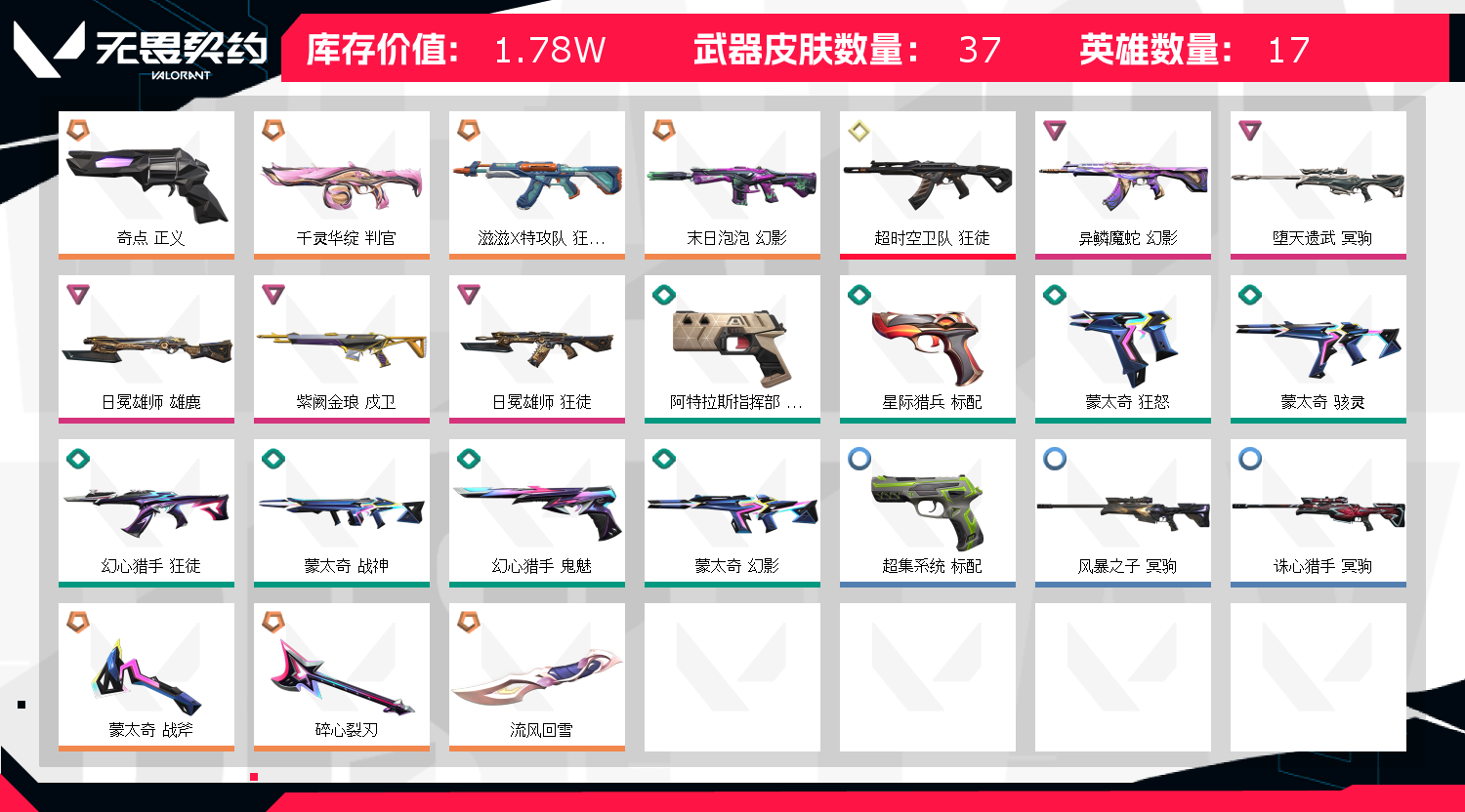 • 皮肤资产价值: 17780