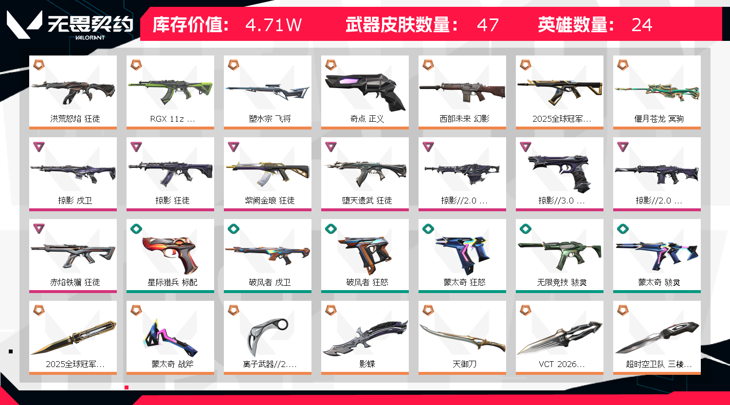 • 皮肤资产价值: 47110