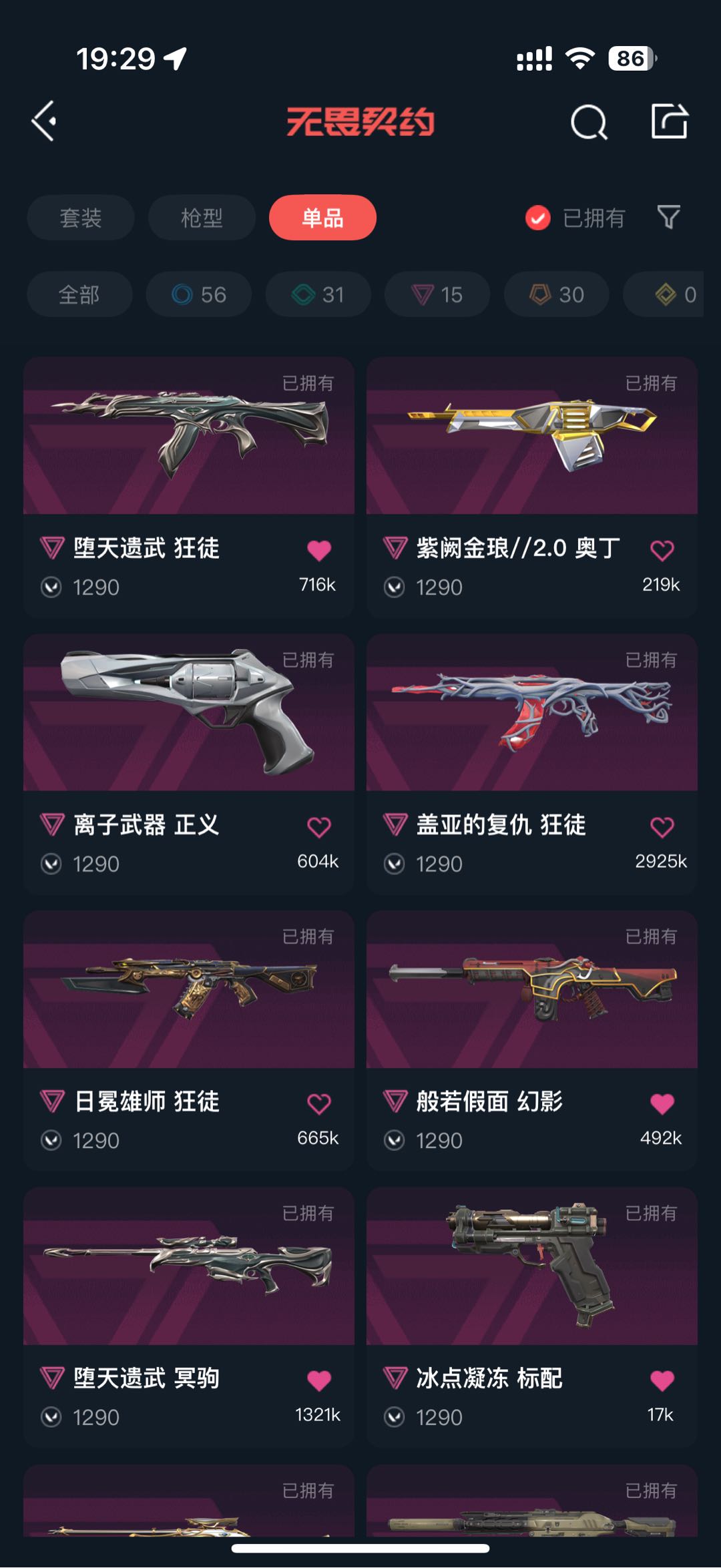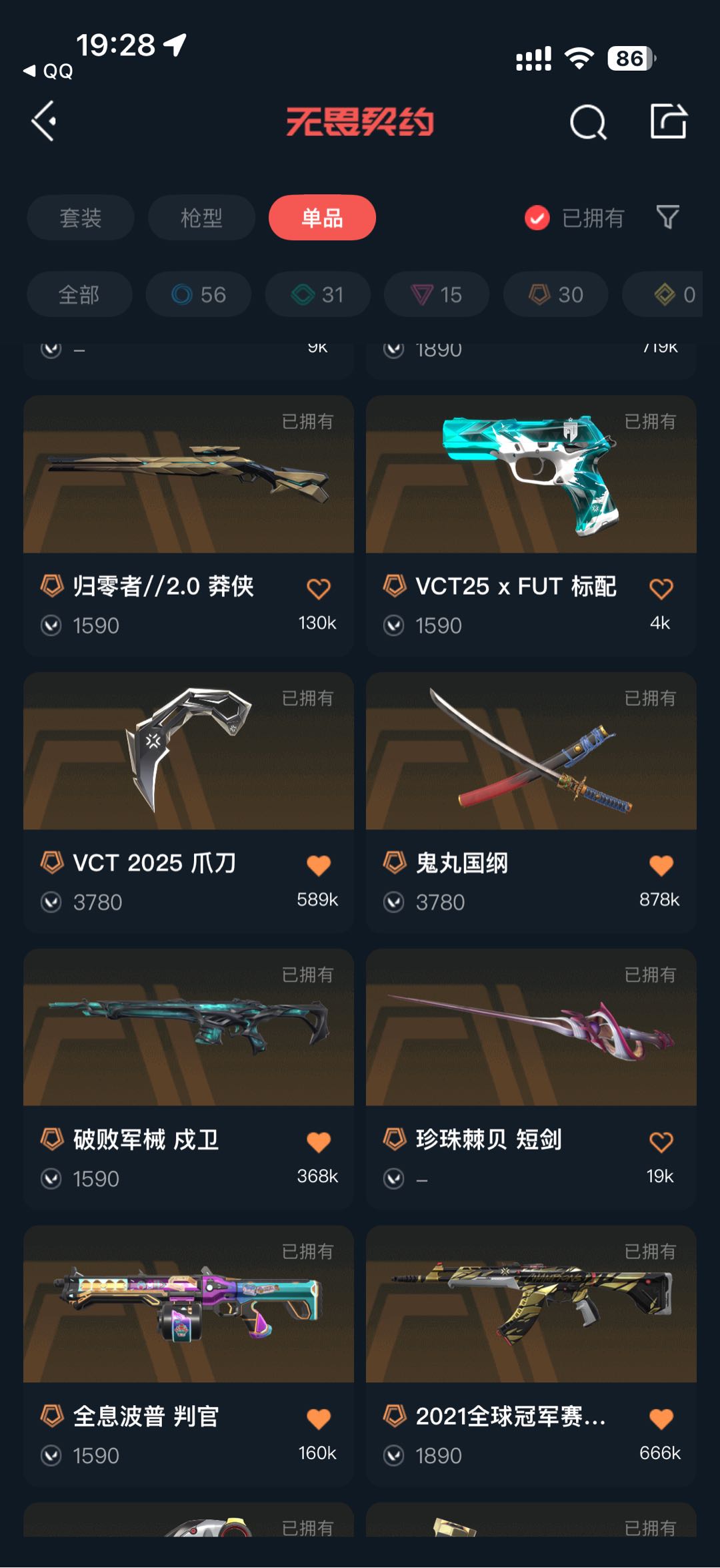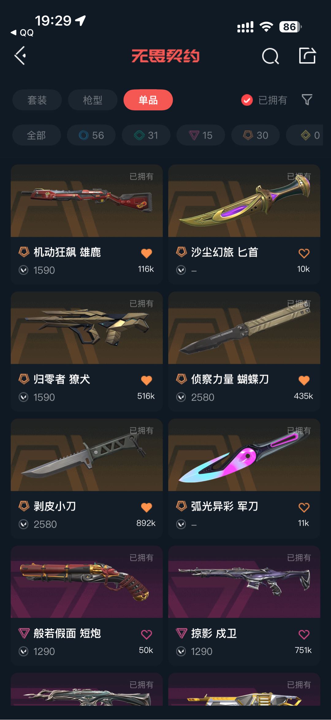 💗21冠军套💗25爪刀💗26篆刀💗怜悯之刃💗摩托套💗紫金爪刀💗剥皮小刀💗假面幻影