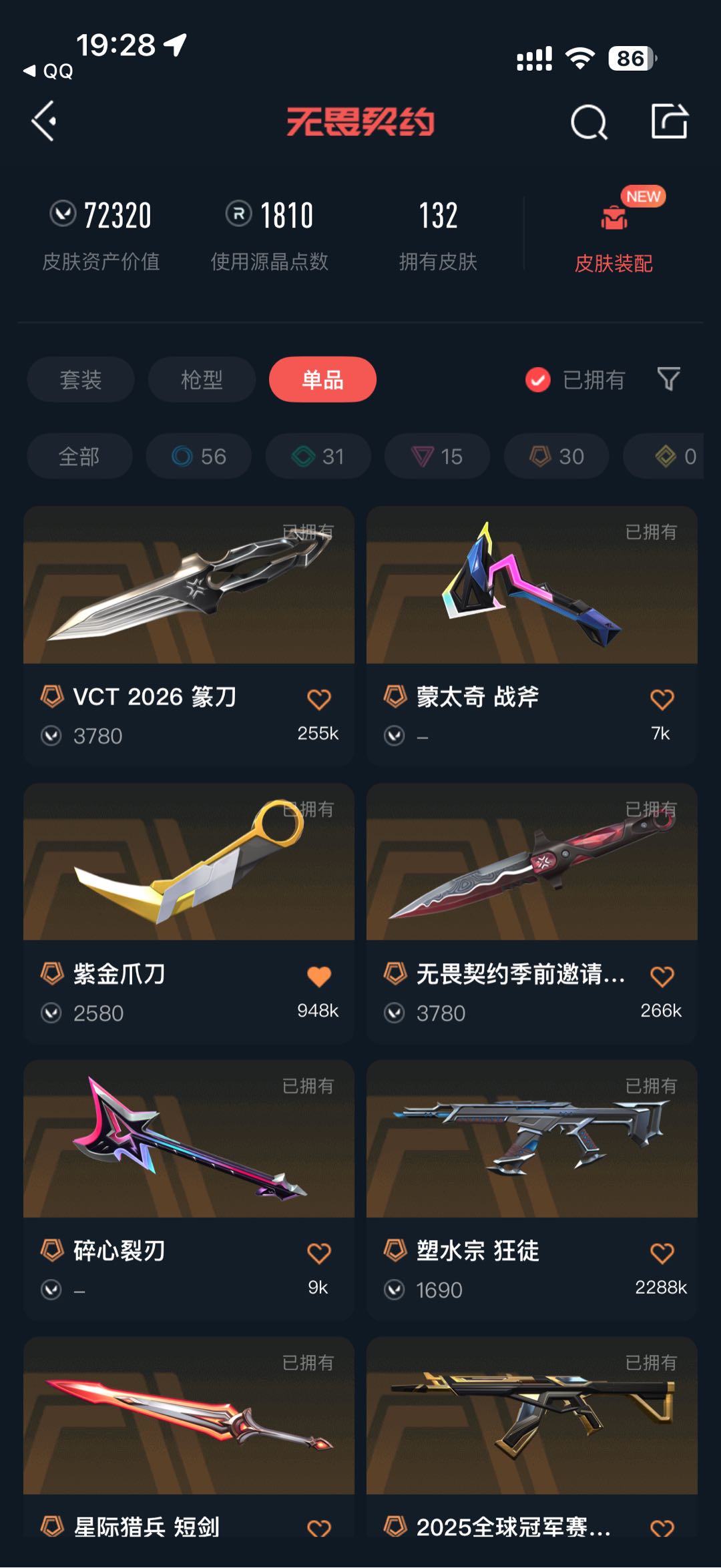 • 皮肤资产价值: 72320