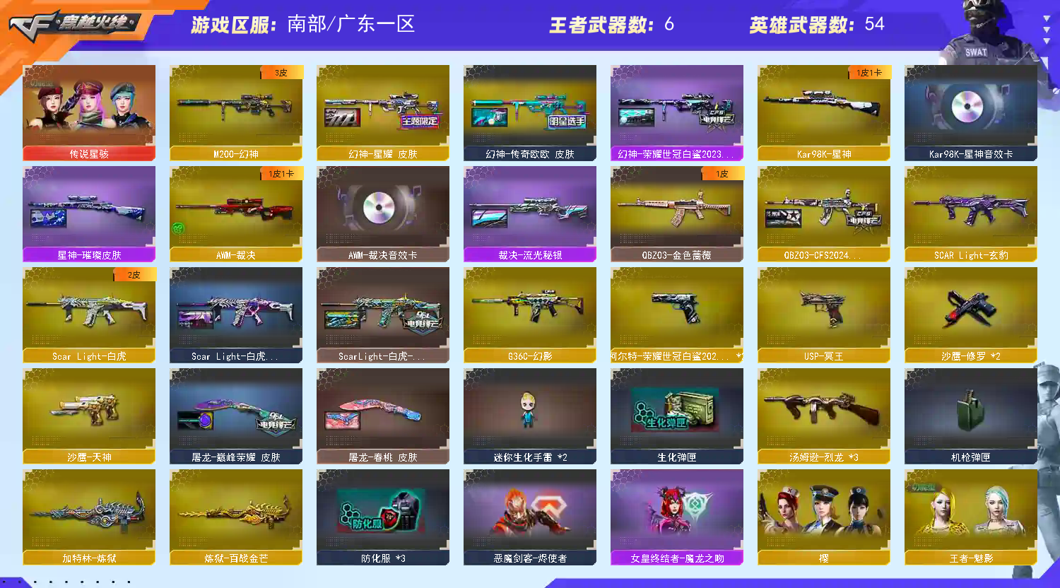 【幻神3皮】【星神三件套】【裁决三件套】【传说星骇】【M200-幻神】【幻神-AG-CFPLS24冠军 皮肤】【幻神-荣耀世冠白鲨2023 皮肤】【幻神-星耀 皮肤】【Kar98K-星神】【星神-璀璨皮肤】【Kar98K-星神音效卡】【AWM-裁决】【AWM-裁决音效卡】【裁决-流光秘银】【Scar Light-白虎】【ScarLight-白虎-冠军之虎皮肤】【Scar Light-白虎-暗星】【王者凌虎】【白虎-电玩蓝兔】【QBZ03-金色蔷薇】【QBZ03-CFS2024 皮肤】【SCAR Light-玄豹】【G36C-幻影】【柯尔特-荣耀世冠白鲨2023】【USP-冥王】【丛林匕首-玄豹】【炼狱-百战金芒】【魂·炼狱-玩具枪】【汤姆逊-烈龙】【传说星骇】【奇洋探员】【乔伊教练】【王者-魅影】【云海玲珑】【M4A1-雷神】【雷神-传奇N9】【雷神-海滩派对 皮肤】【AK47-火麒麟】【传奇石头-横秒之巅】【火麒麟-心动糖果】【火麒麟-CFSTAR】【M4A1-黑骑士】【黑骑士-CFS2021】【黑骑士-摸金校尉】【黑骑士-暗月】【M4A1-黑龙】【Barrett-毁灭】【毁灭-暗月】;柯尔特-荣耀世冠白鲨2023,传说星骇,QBZ03-金色蔷薇,G36C-幻影,M200-幻神,Scar Light-白虎,Kar98K-星神,
