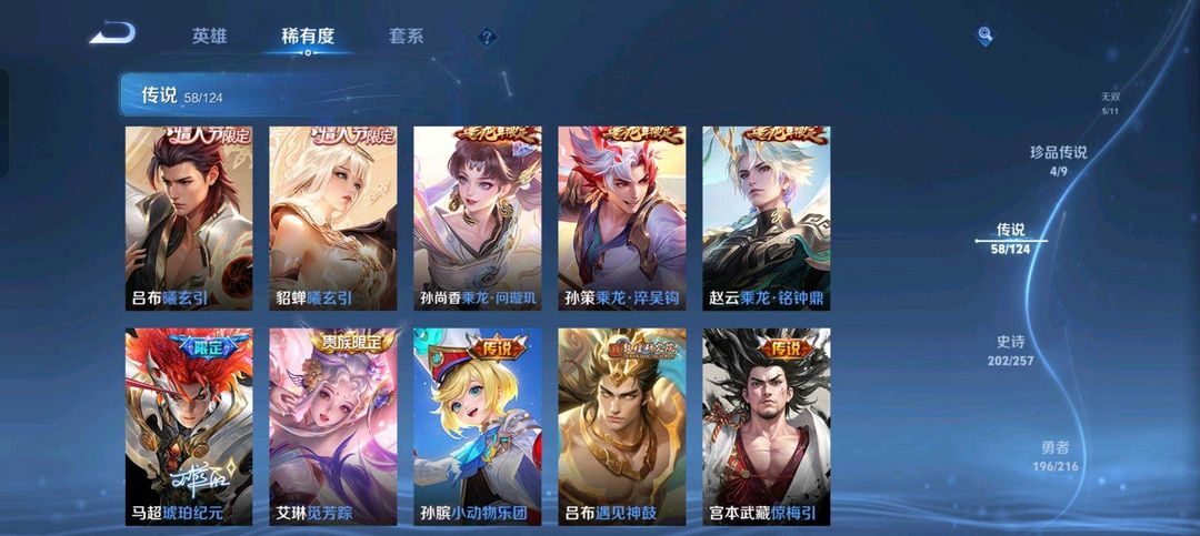 【非沄直接上号】极品V10★三历史国标★430皮★六典藏★诸葛亮新典藏★虎年五限定★鸣剑戈影★活力突击️★多限定