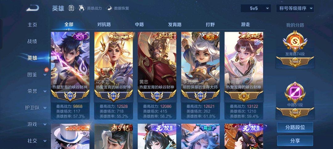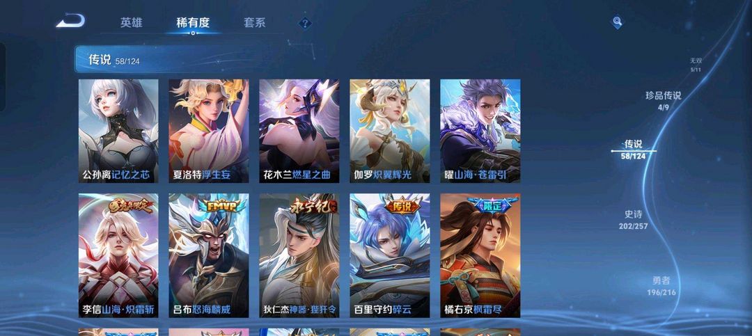 V10✨576皮发育路74段✨历史4小国苍花木兰黄忠李元芳5水5无双4珍品58传说✨至尊宝✨白虎志✨