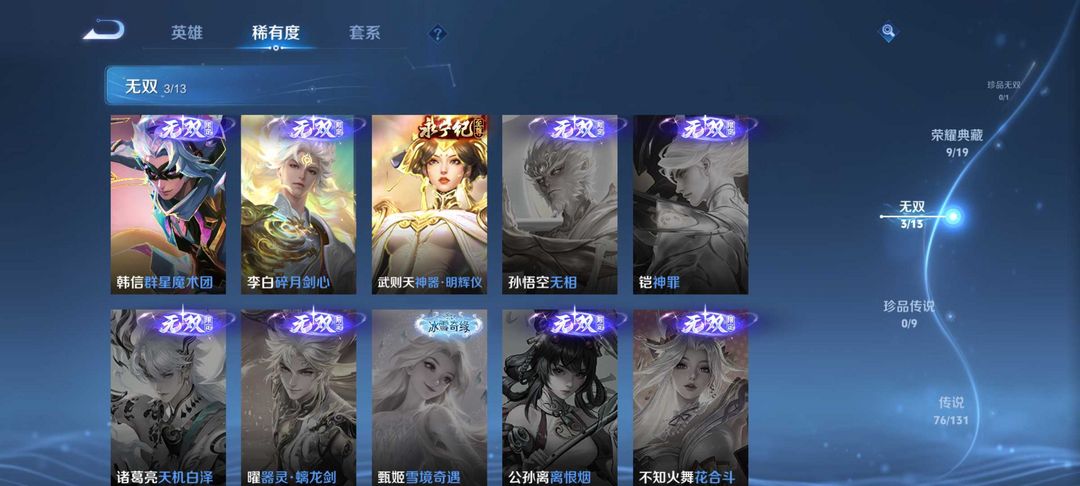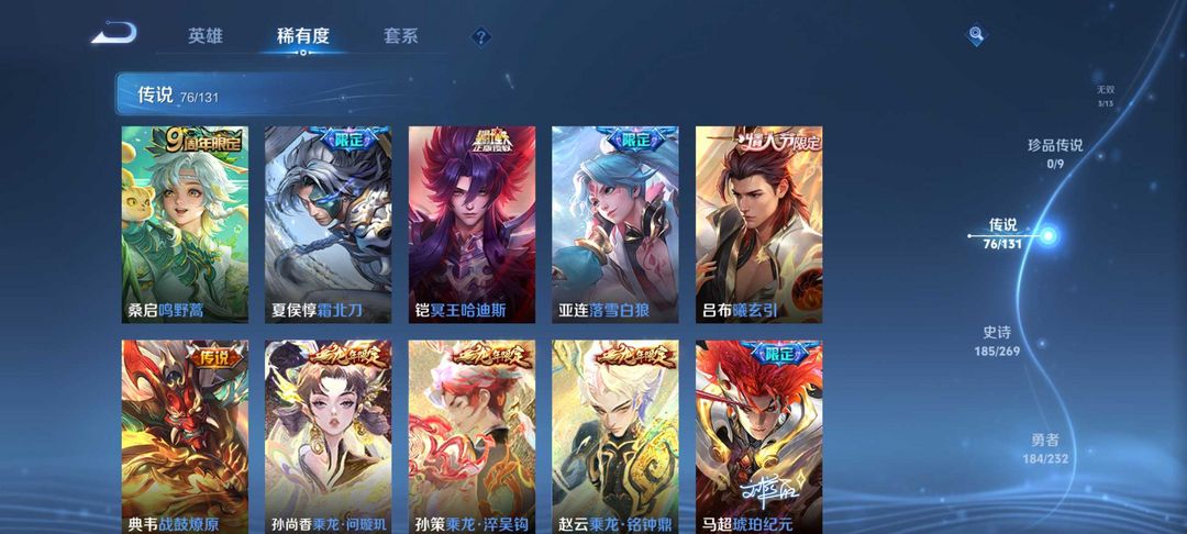 V10、550皮14水、吕布典藏-千魇归渊、云缨-神骥·越千峰、怪盗基德、伽罗星传说红枫、瑶典藏拾光映像、冥王哈迪斯、、龙年限定、齐天大圣