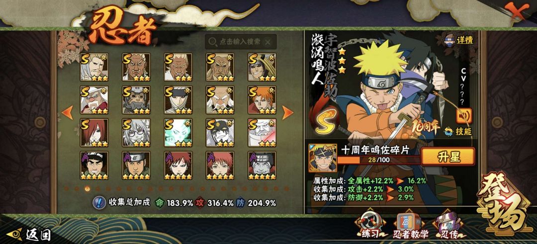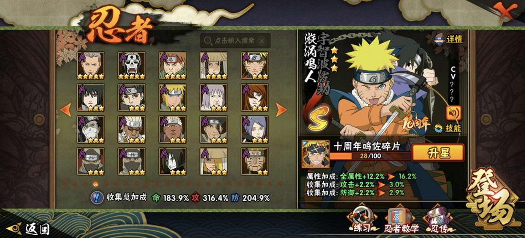 377忍者♥三千四百万战力♥56s♥神驹斑体验卡十尾带土黑绝舍人五影斑九喇嘛水门♥全高招a多点券a