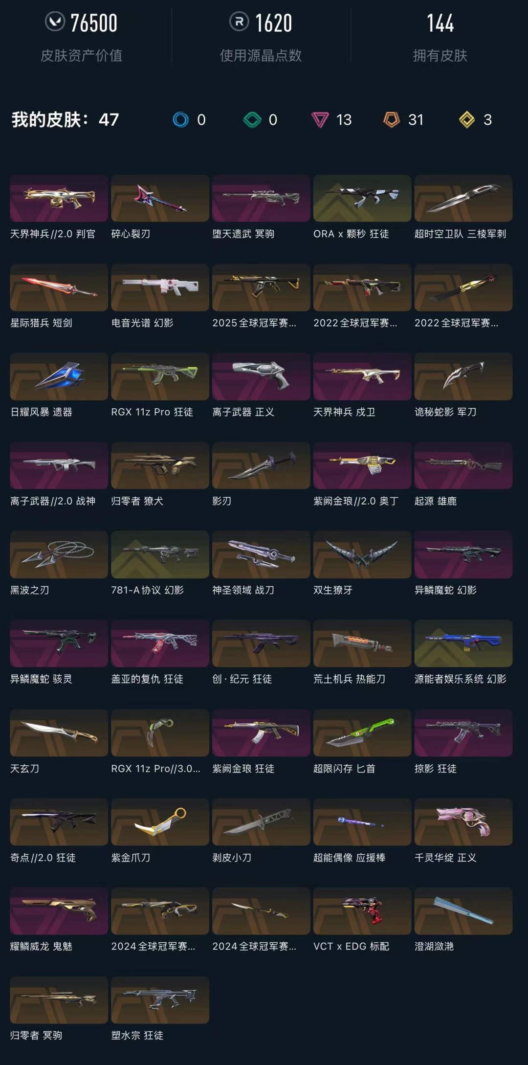 • 武器皮肤数量: 144