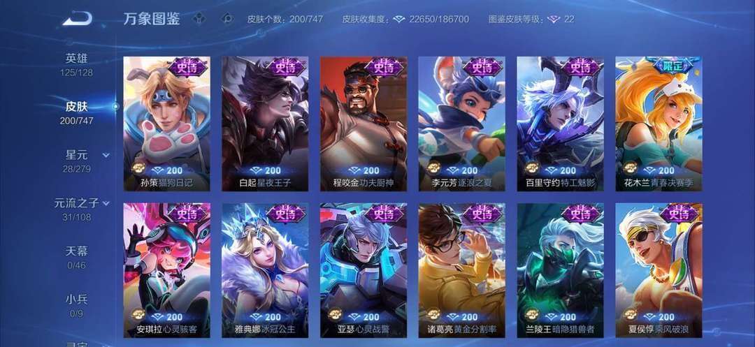 【非云直上】V10★皮肤榜一★539皮满典藏★鲁班时之奇旅会员★虞姬黛羽霜翎星元★吕布白金战神★全能大师★多金标★个性按键