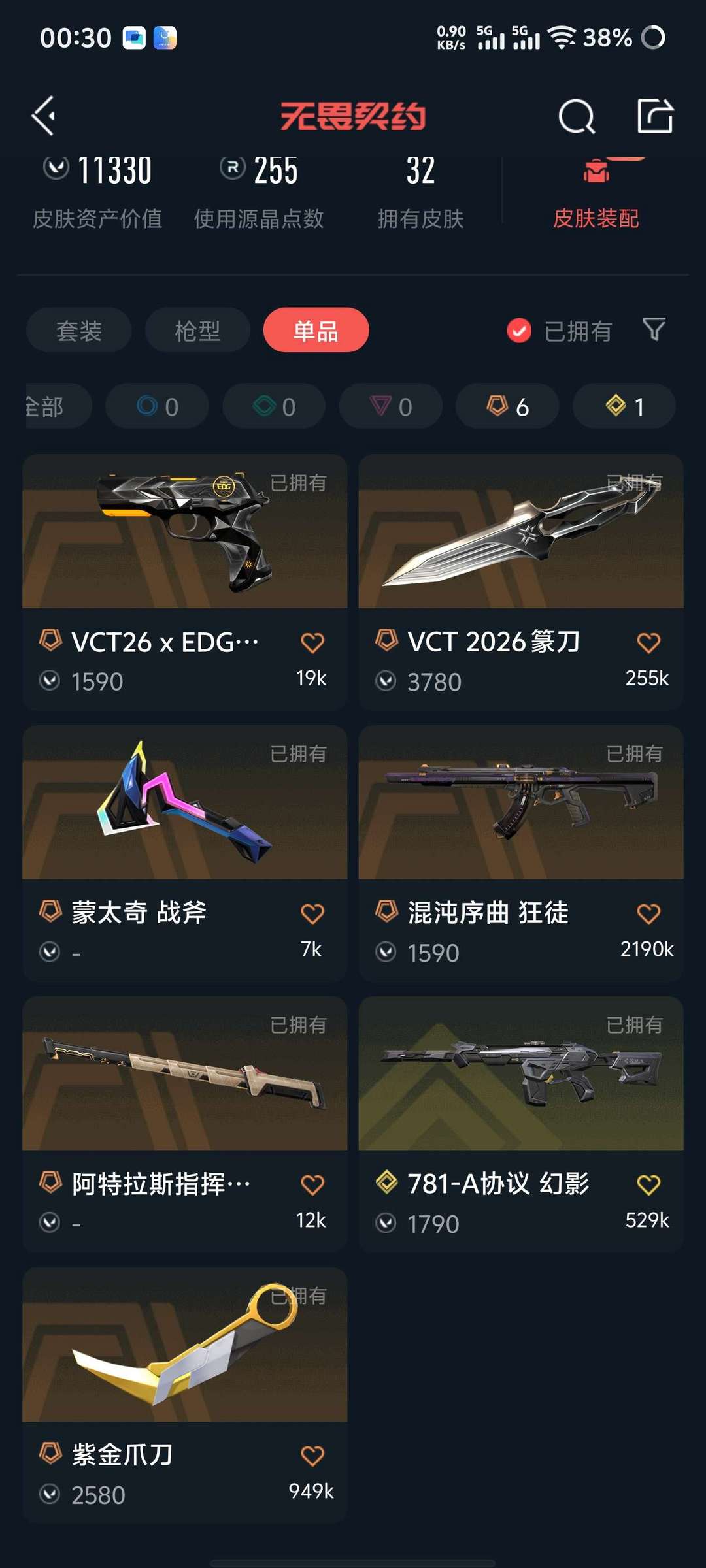 首页 > 租号大厅 > 无畏契约-wegame > wegame/wegame > 混沌ak,781幻影,vct26刀皮紫金爪刀,vct26EDG标配,低段位,全英雄,下三炸鱼必备!