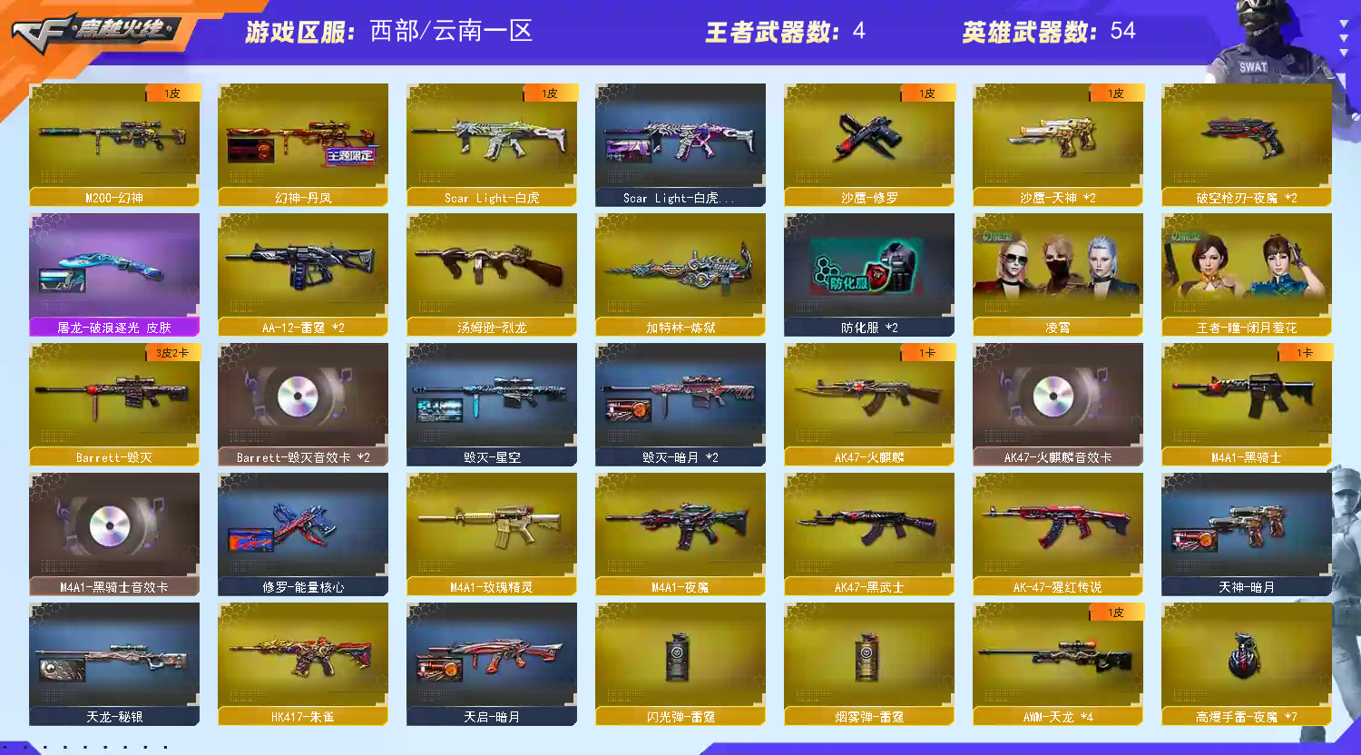 • 游戏区服:穿越火线 / 西部 / 云南一区