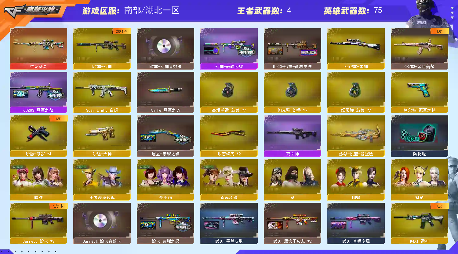 • 游戏区服:穿越火线 / 南部 / 湖北一区