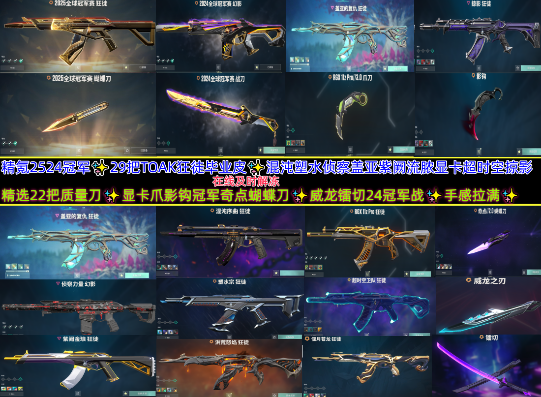 2524冠军✨29把T0AK狂徒✨22刀显卡影钩冠军奇点蝴蝶威龙刃✨混沌塑水侦察盖亚紫阙流脓显卡掠影
