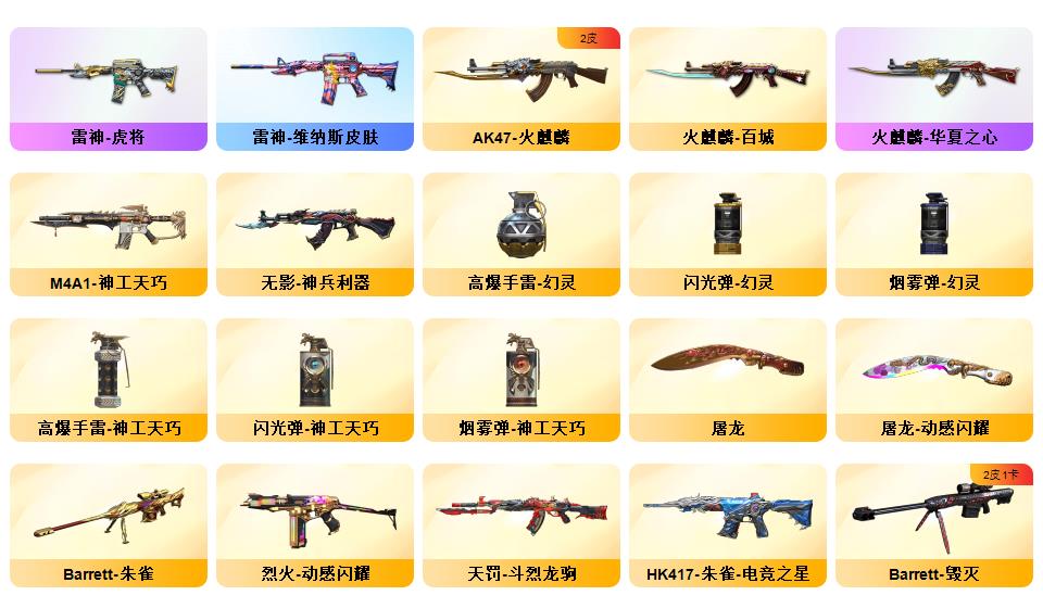 【穿越火线】广东一区 ,传说灵眸/幻神荣耀世冠EP /幻神冠军之幻/毁灭星空/毁灭黑大圣/裁决流光秘银/火麒麟CFSTAR/火麒麟华夏之心/火麒麟百城/无影耀金/黑武士361/鹰/荒漠琉璃/隼/曼珠沙华/幻面灵狐//M200-幻神/Barrett-毁灭/Barrett-朱雀/Kar98K-星神/M4A1-神工天巧/Scar Light-白虎音效卡/Barrett-毁灭音效卡,炽芒蝶刃(2)