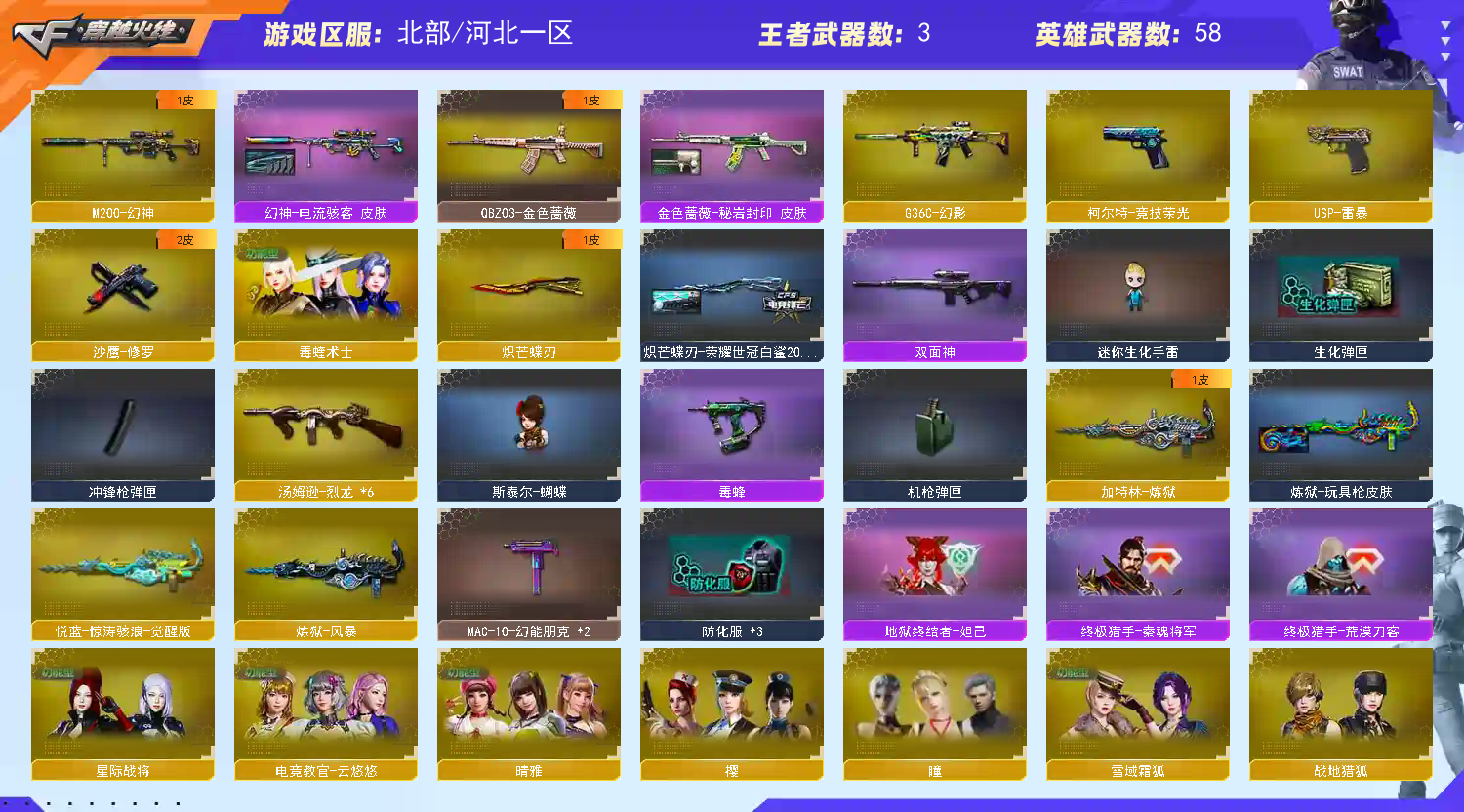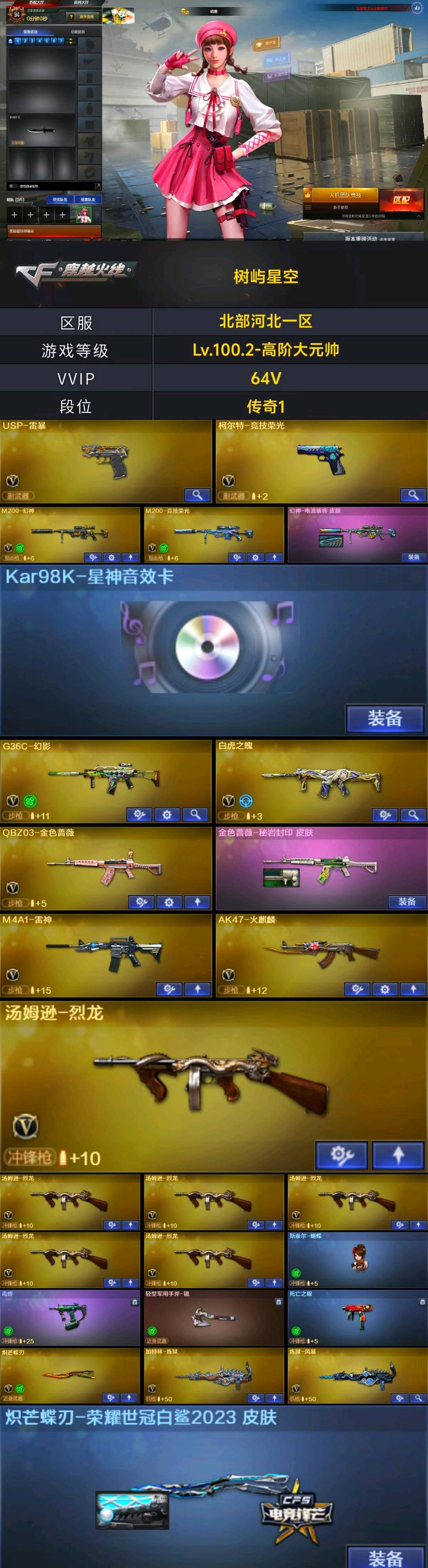 【🈲止使用鼠标宏,DMA,外挂进行游戏,造成损失后果自负!!!】 【订单时间快到了🈲止再开排位赛,导致账号禁赛的租客将被永久拉黑!】 本账号经过网络财产备案,一经发现直接报警处理立案追责,根据账号价值全额赔偿感谢支持谢谢合作谢谢合作!!!!禁止利用账号进行开挂、使用辅助违规软件诈骗等违规操作!;USP-雷暴,炽芒蝶刃,电竞教官-云悠悠,晴雅,QBZ03-金色蔷薇,G36C-幻影,M200-幻神,