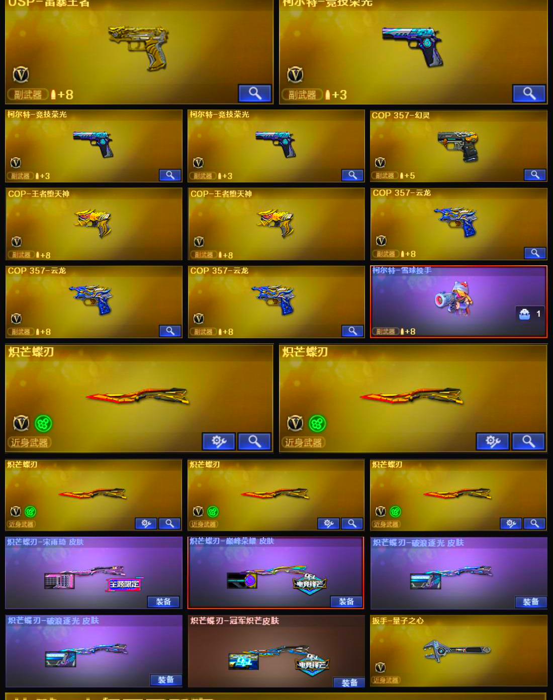 新双神威艾莉莎浩劫幻神EP带卡裁决三件套星神三件套白虎qbz三件套天袭幻影11副5蝴蝶刀4皮狮子