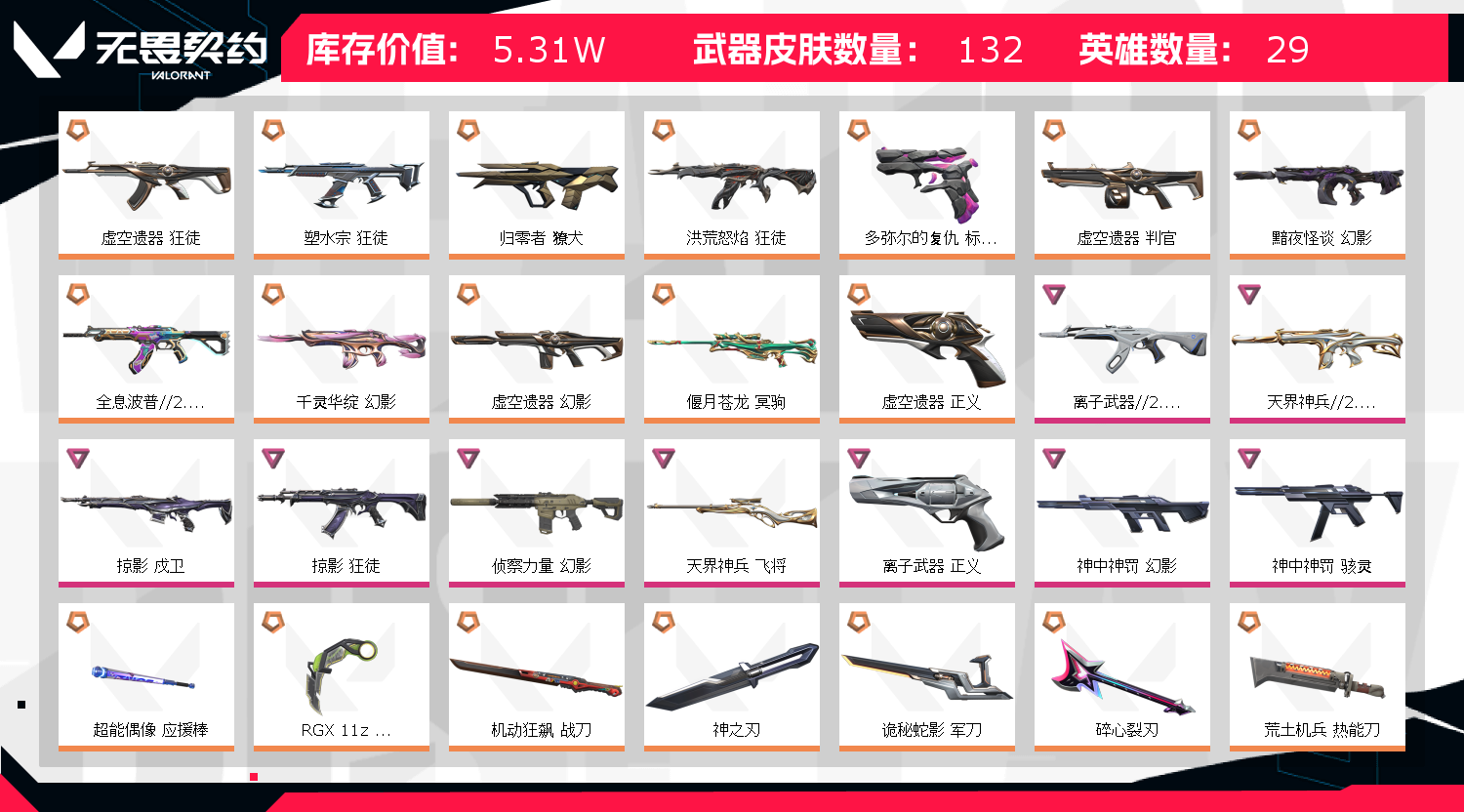 • 皮肤资产价值: 53130