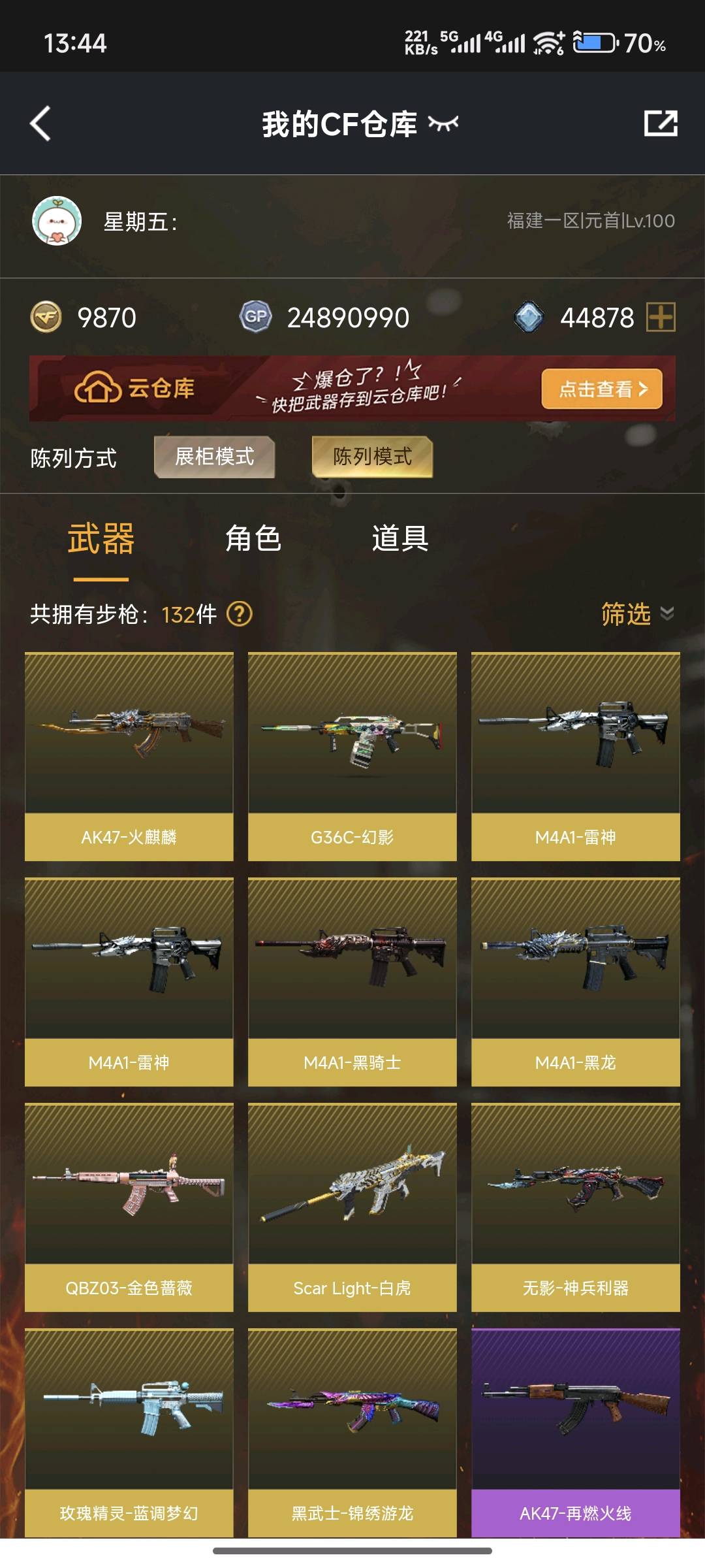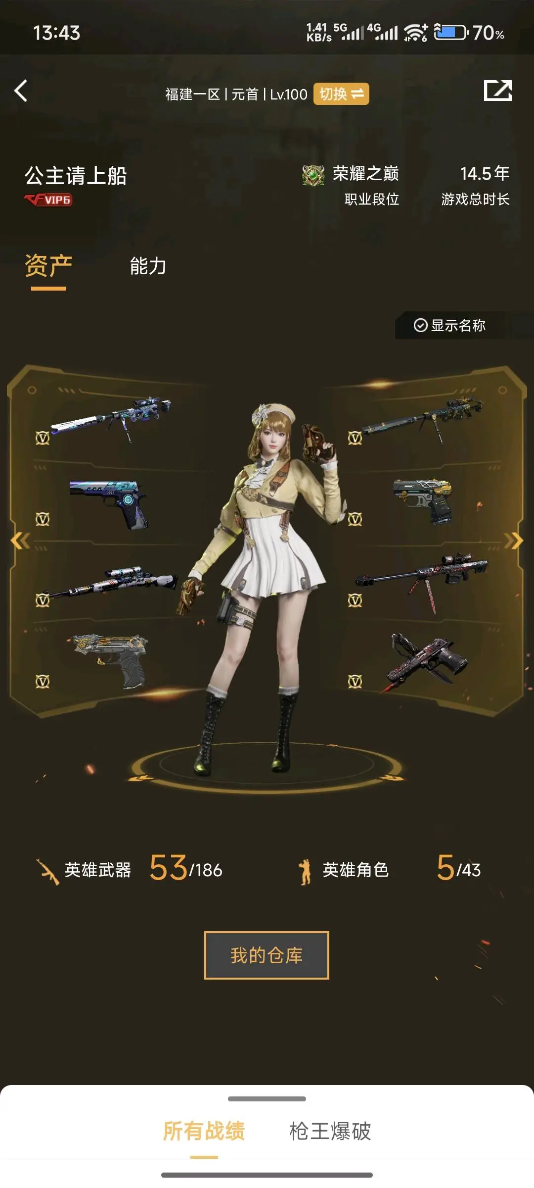 传说星骇+电流骇客白鲨4p幻神带卡+星神裁决QBZ白虎三件套+柯尔特uspcop;USP-雷暴,炽芒蝶刃,传说星骇,电竞教官-云悠悠,QBZ03-金色蔷薇,G36C-幻影,M200-幻神,