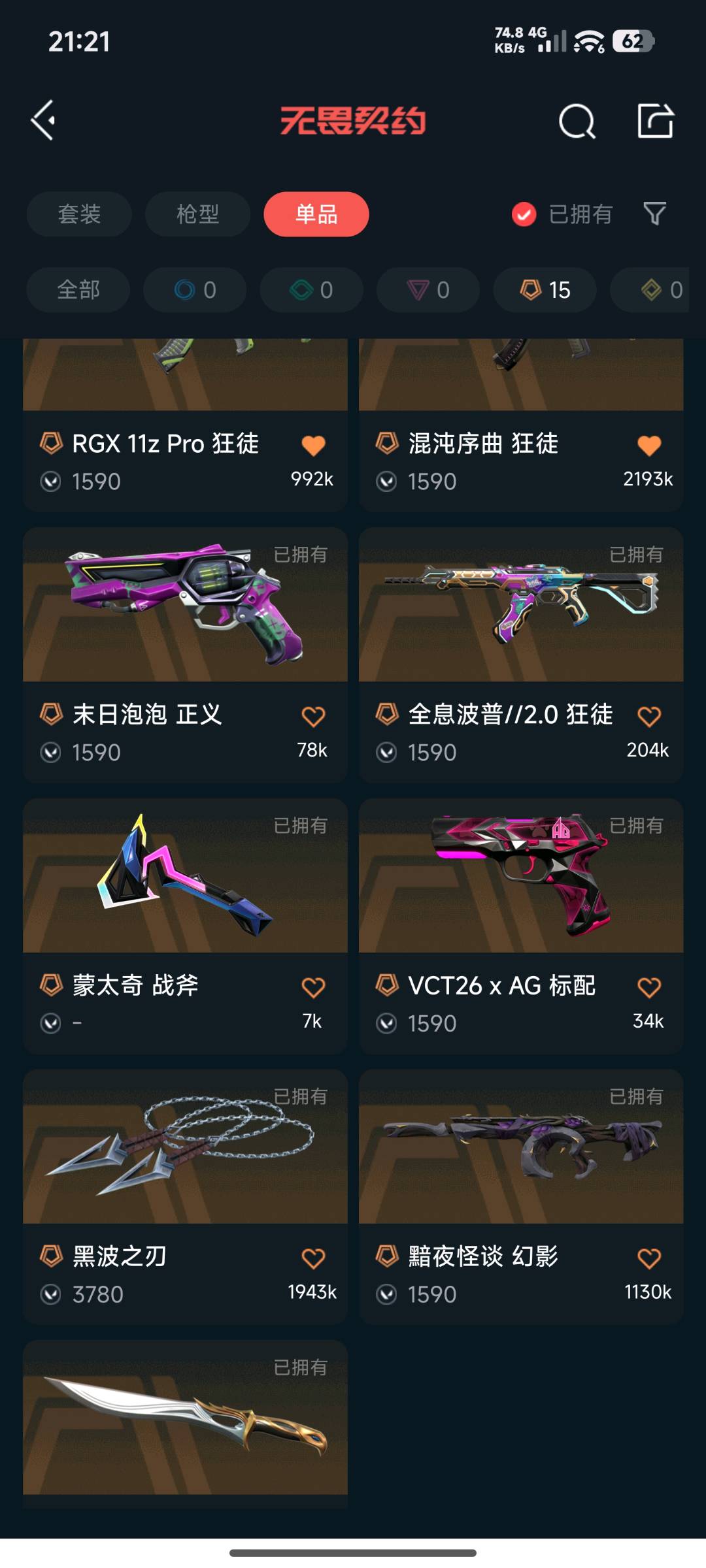 多皮肤;黑波之刃,RGX 11z Pro 狂徒,混沌序曲 狂徒,堕天遗武 冥驹,RGX 11z Pro//3.0 莽侠,天界神兵 鬼魅,