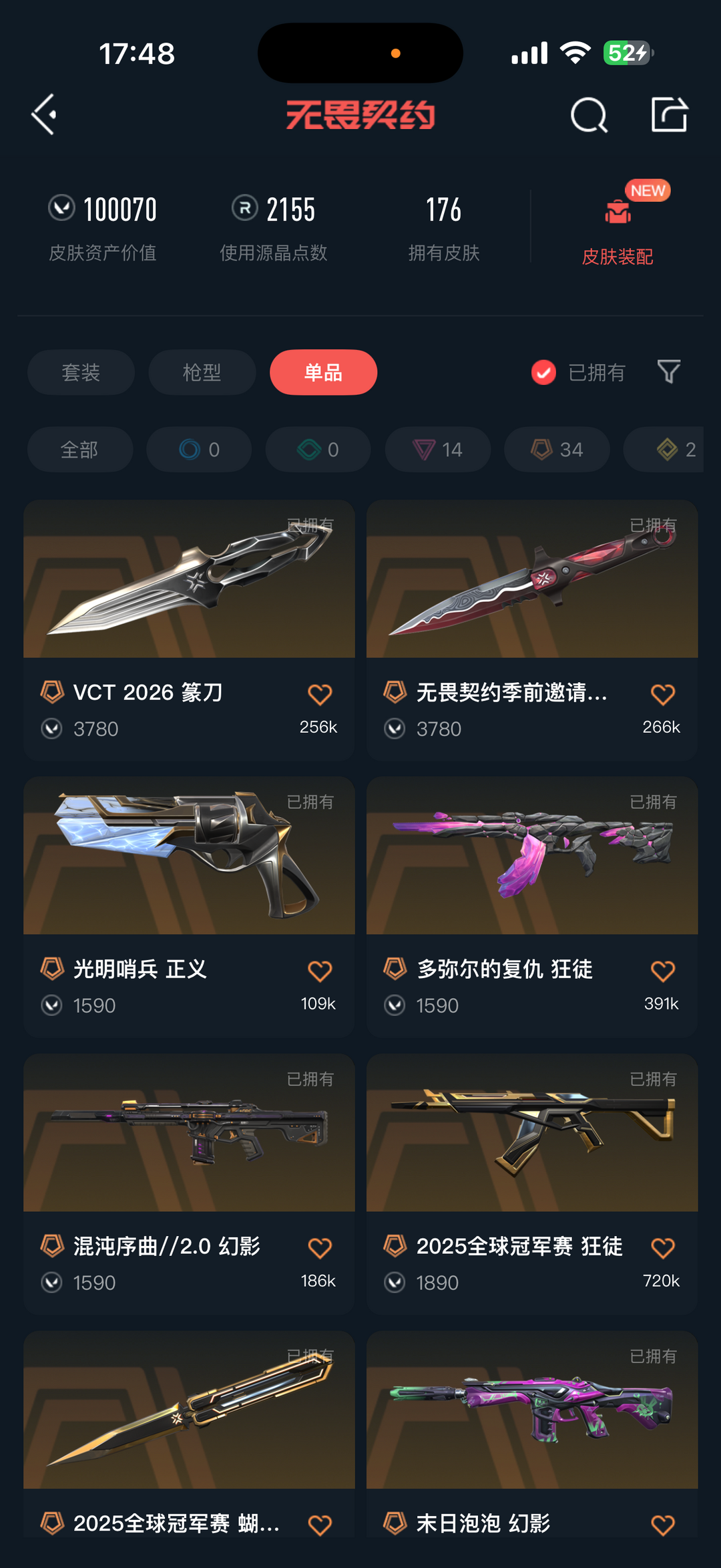 可排位21冠军-vct26篆刀-悲悯之刃-25冠军-魔术火花影钩-多弥尔超时空显卡光荣异象狂徒